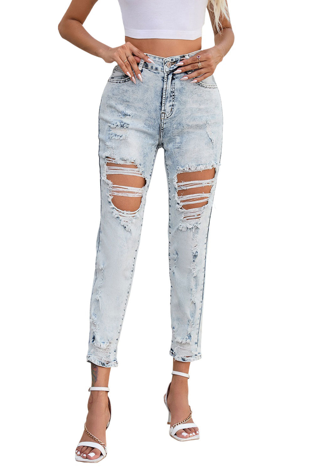 Sky Blue Vintage Washed Heavy Destroyed Skinny Jeans