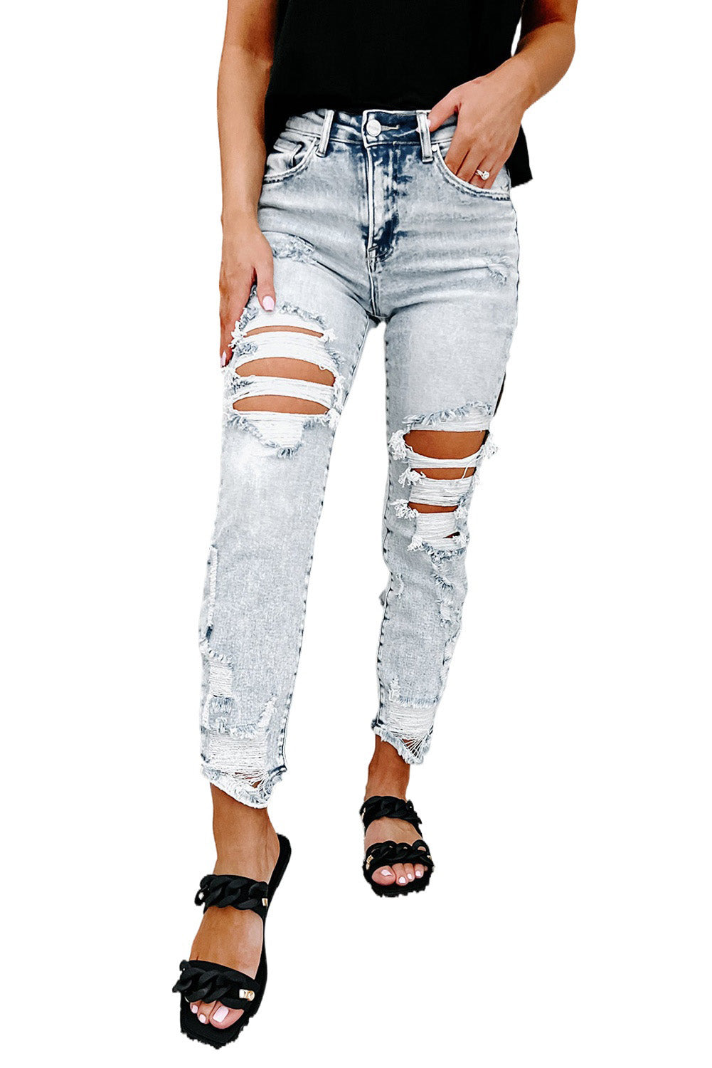 • Heavy destroyed detailing for an edgy look
