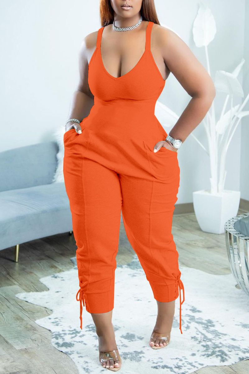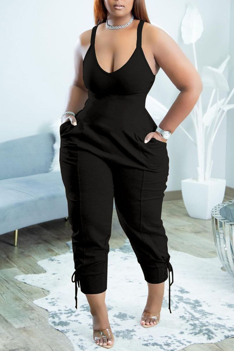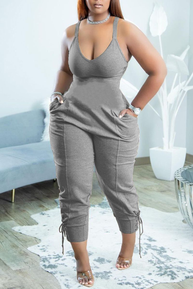 Slant Pocket Lace Up Hem Tank Jumpsuit