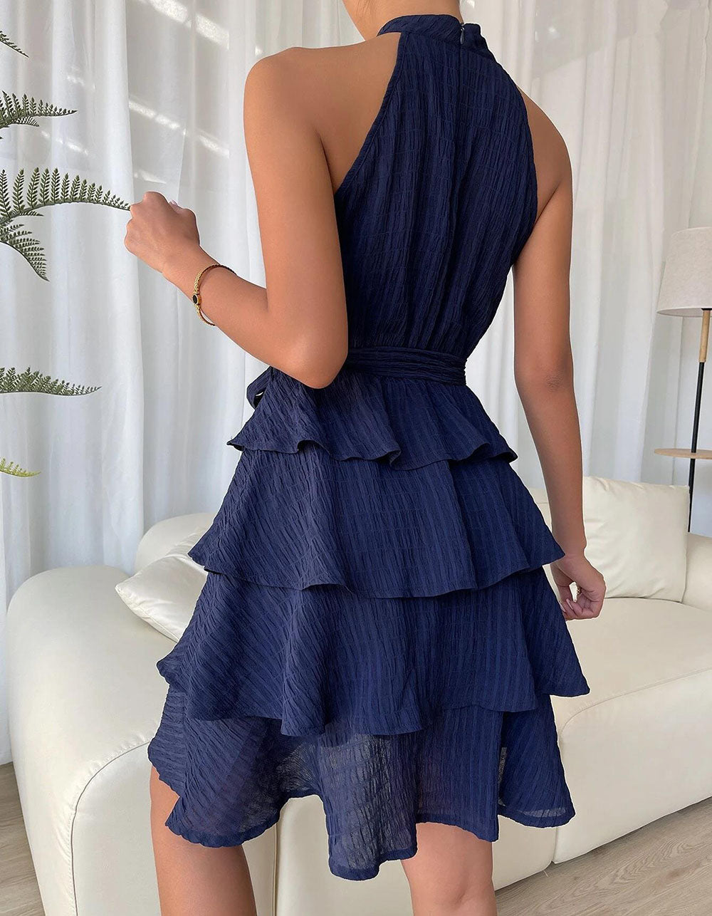 Sleeveless Halter Round Neck Ruffle Short A Line Dresses