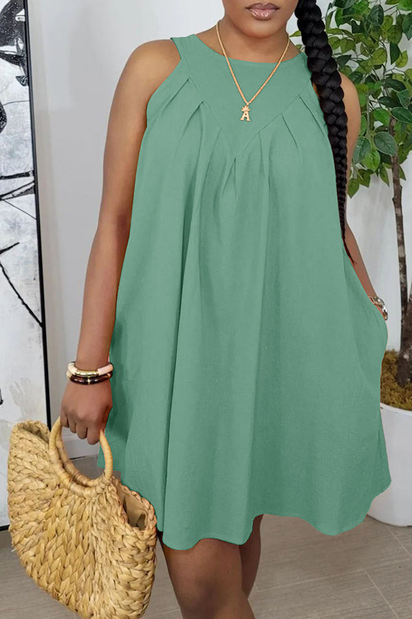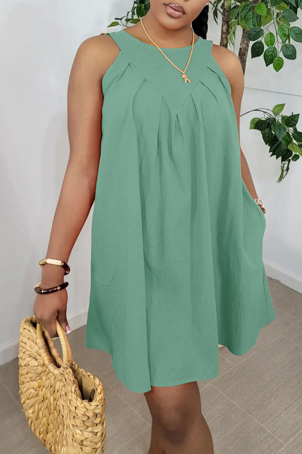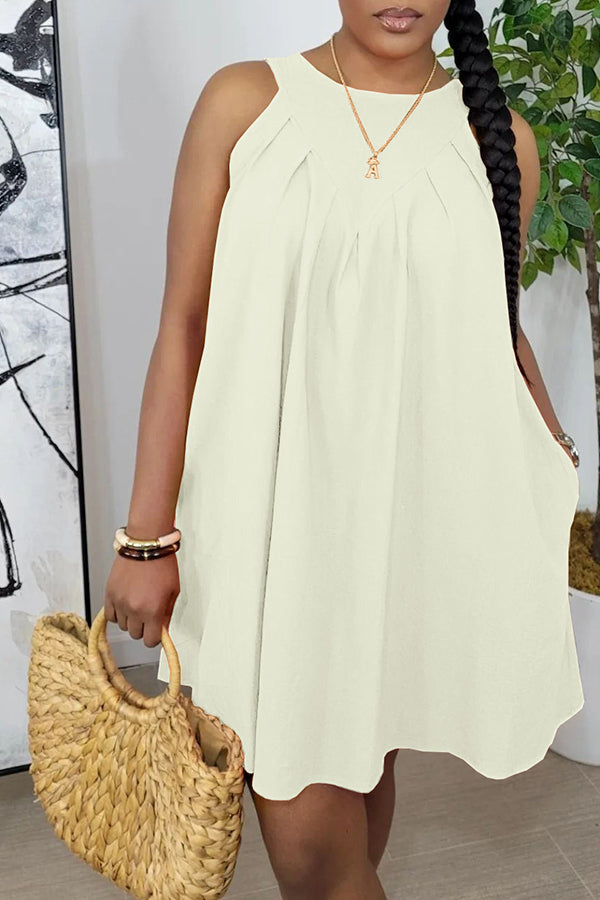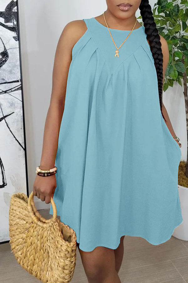 Sleeveless Ruched Pocket Cotton Blend Mini Dress