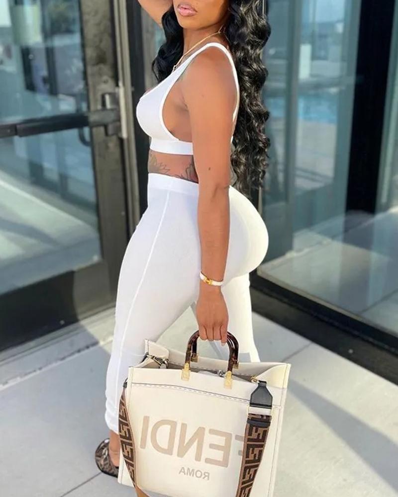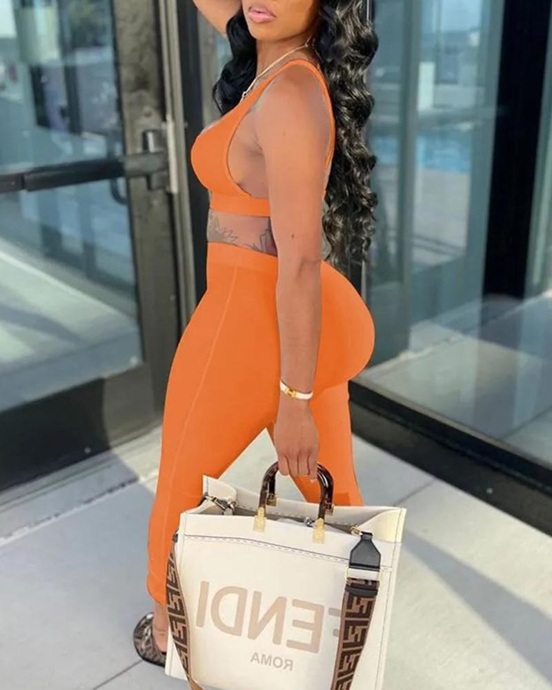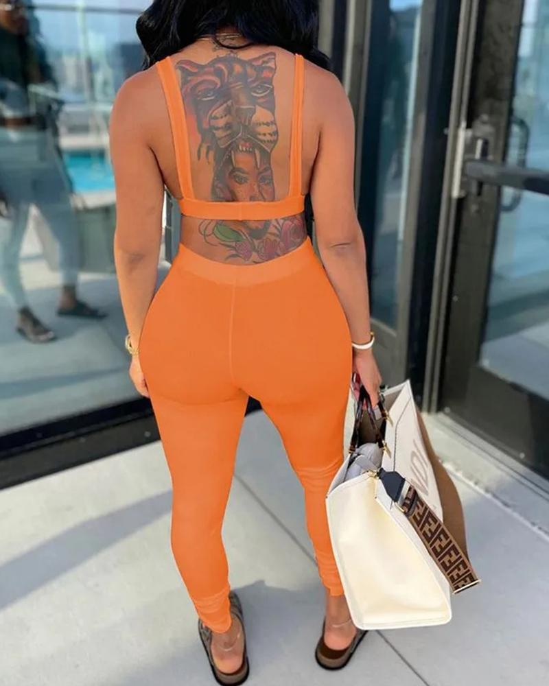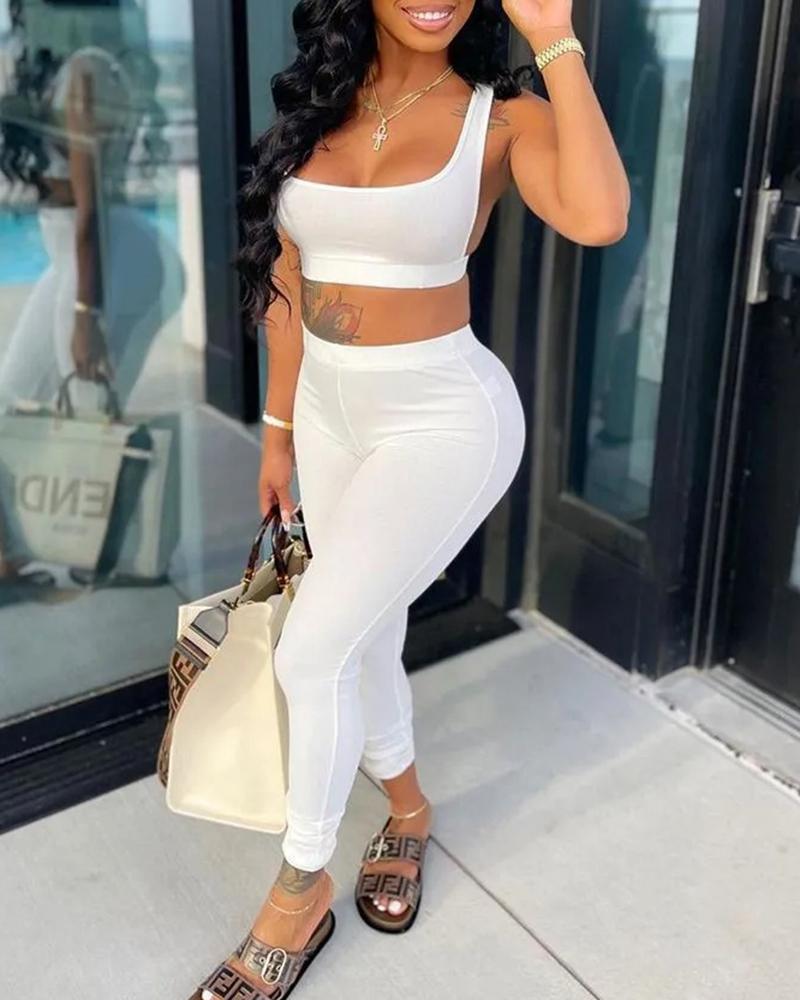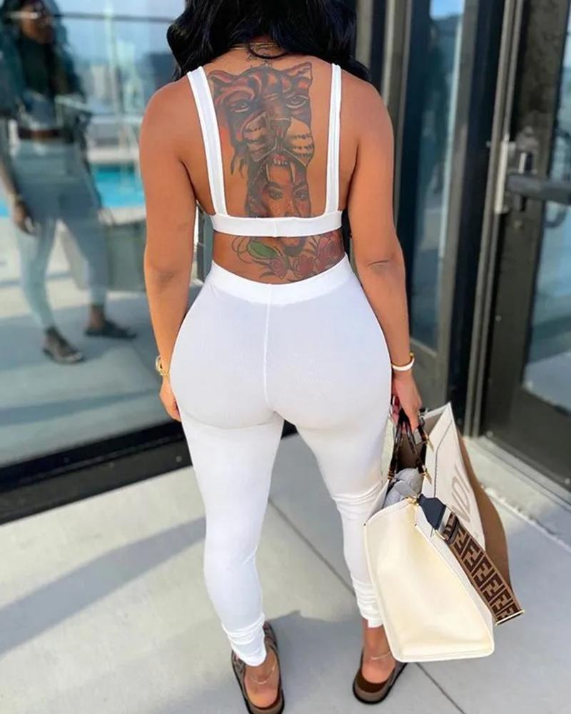 Solid Backless Tank Top & Pants Set