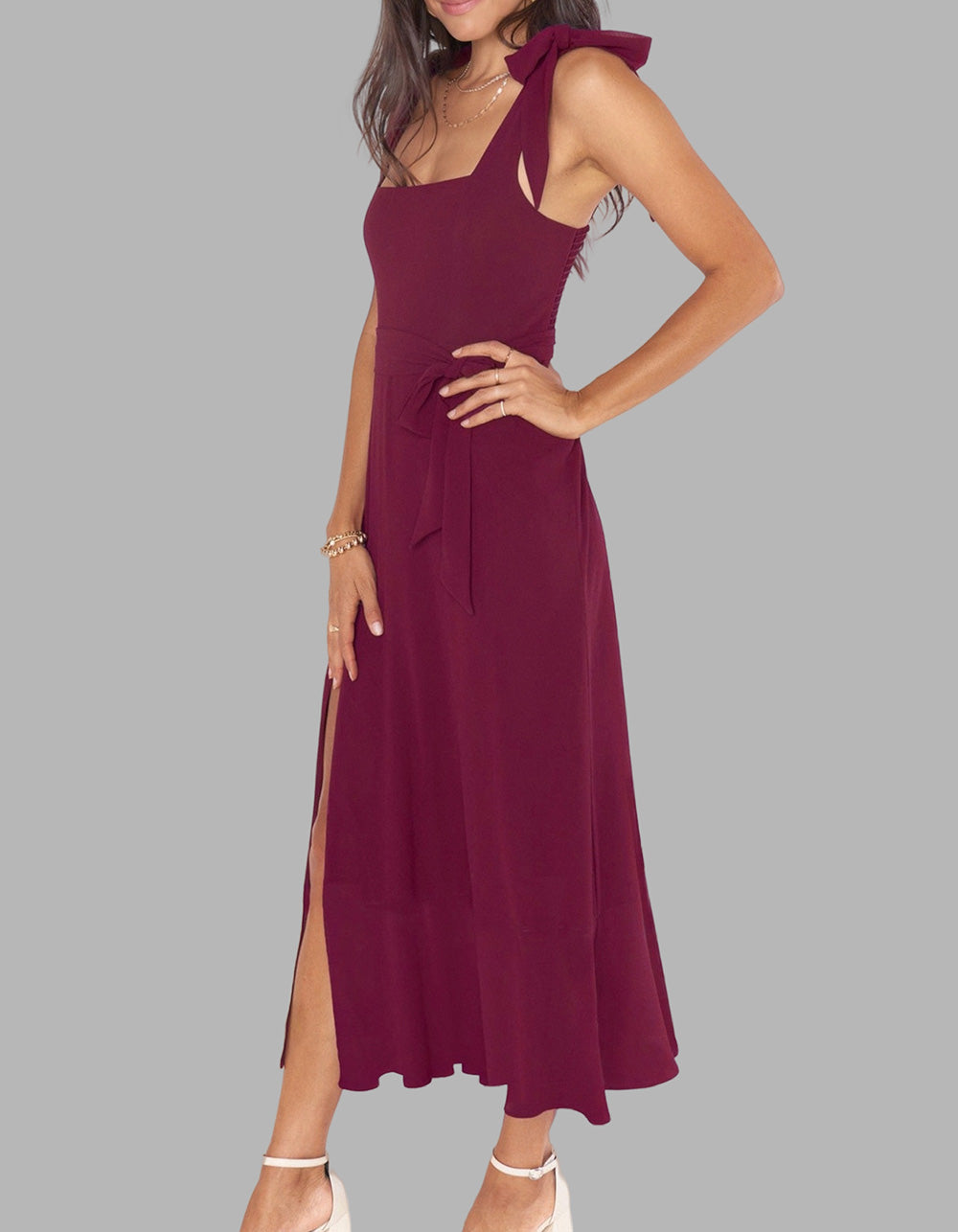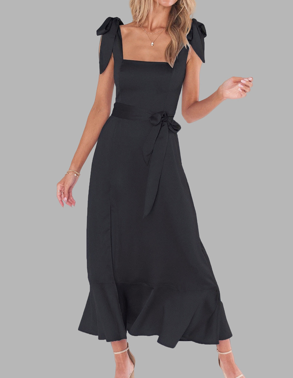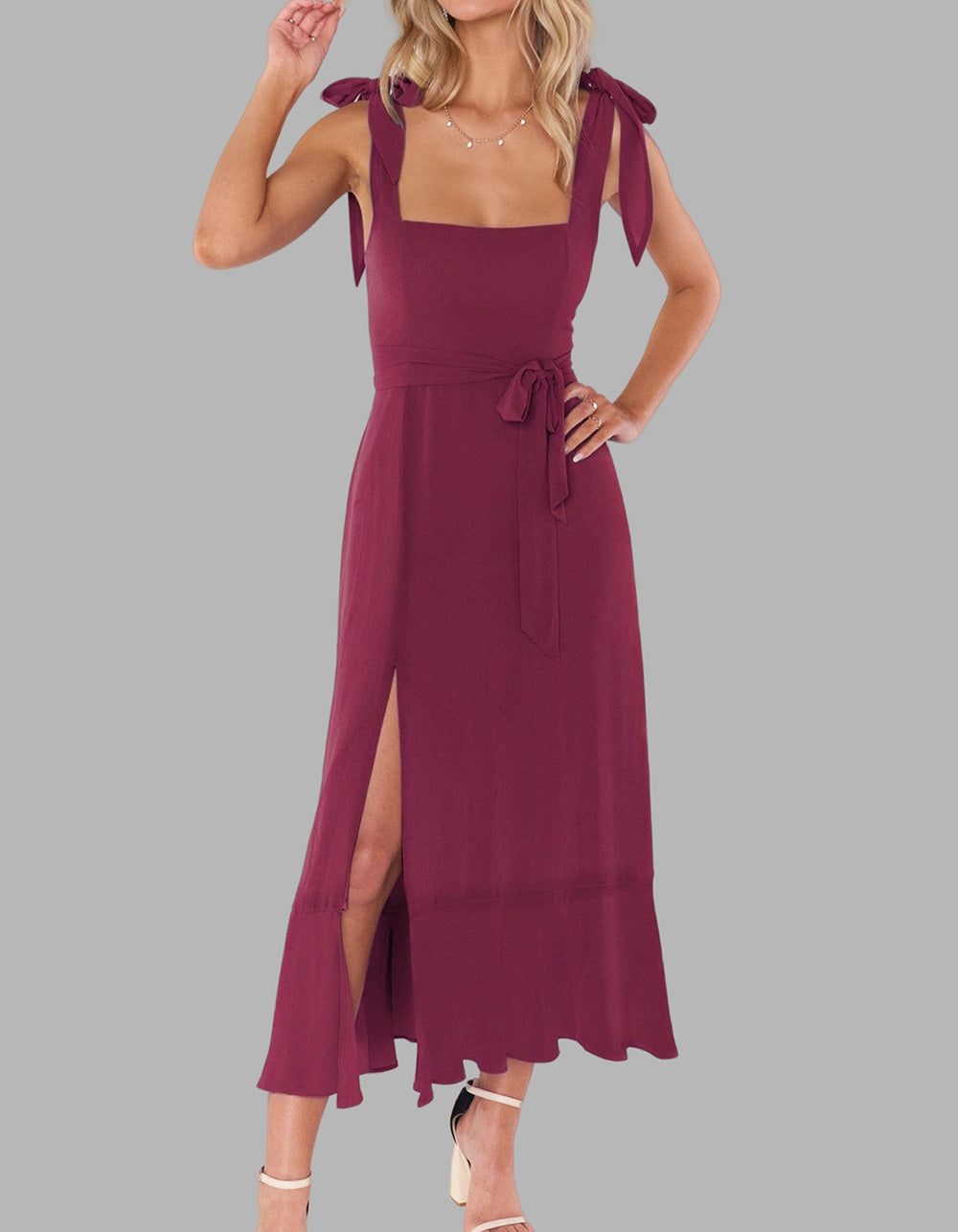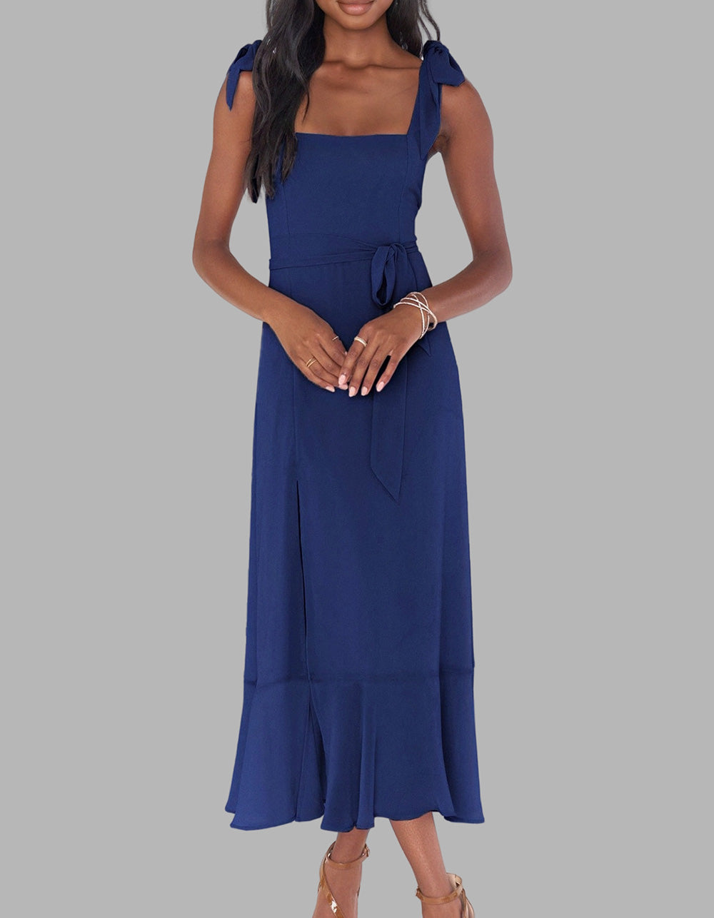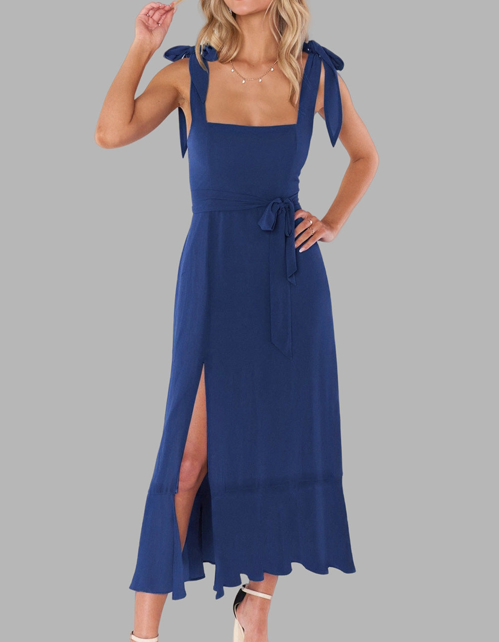 This Solid-color Elegant Square Neck Backless Slits Long A-Line Dress is perfect for any occasion. Crafted with high-quality polyester for a fit that flatters, it features an A-line design with a square neckline, sleeveless silhouette, and slit detail. Available in five colors, you're sure to find a shade that reflects your personal style.