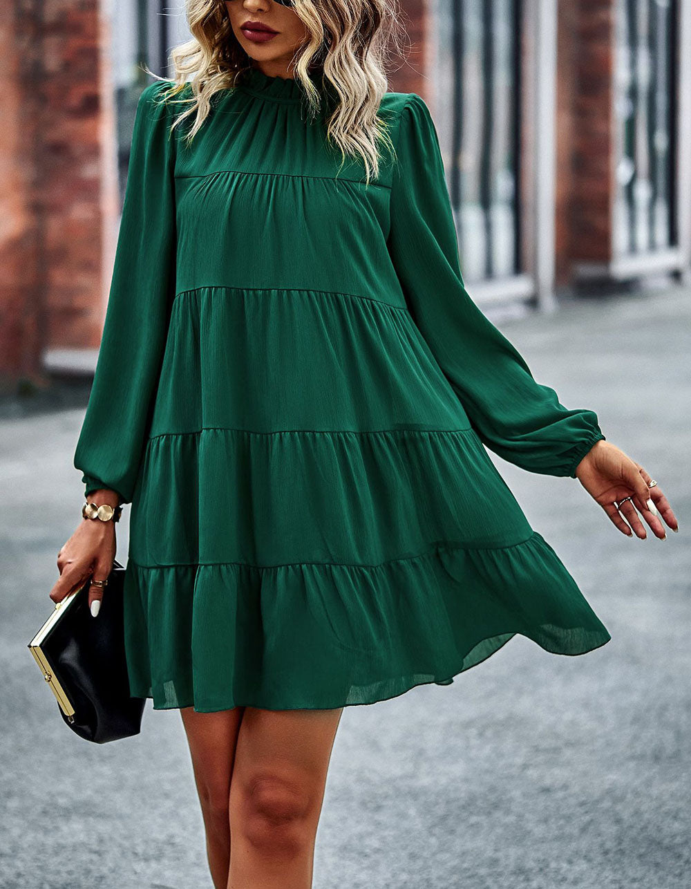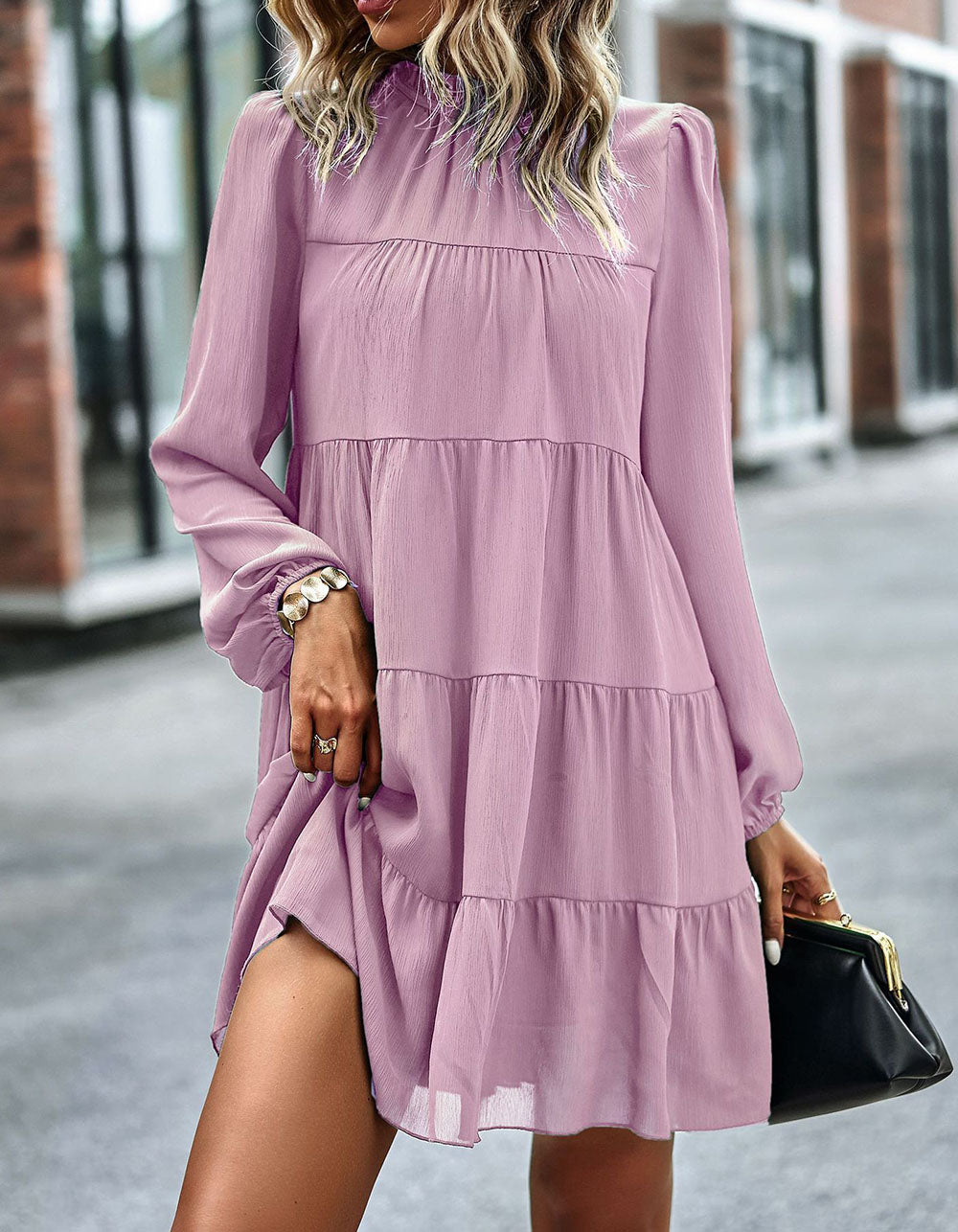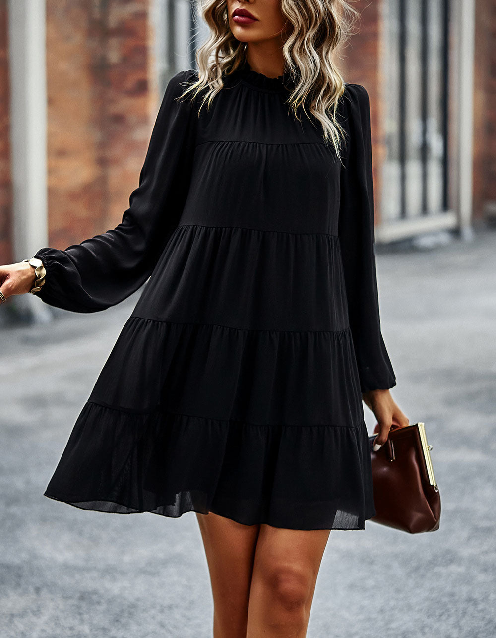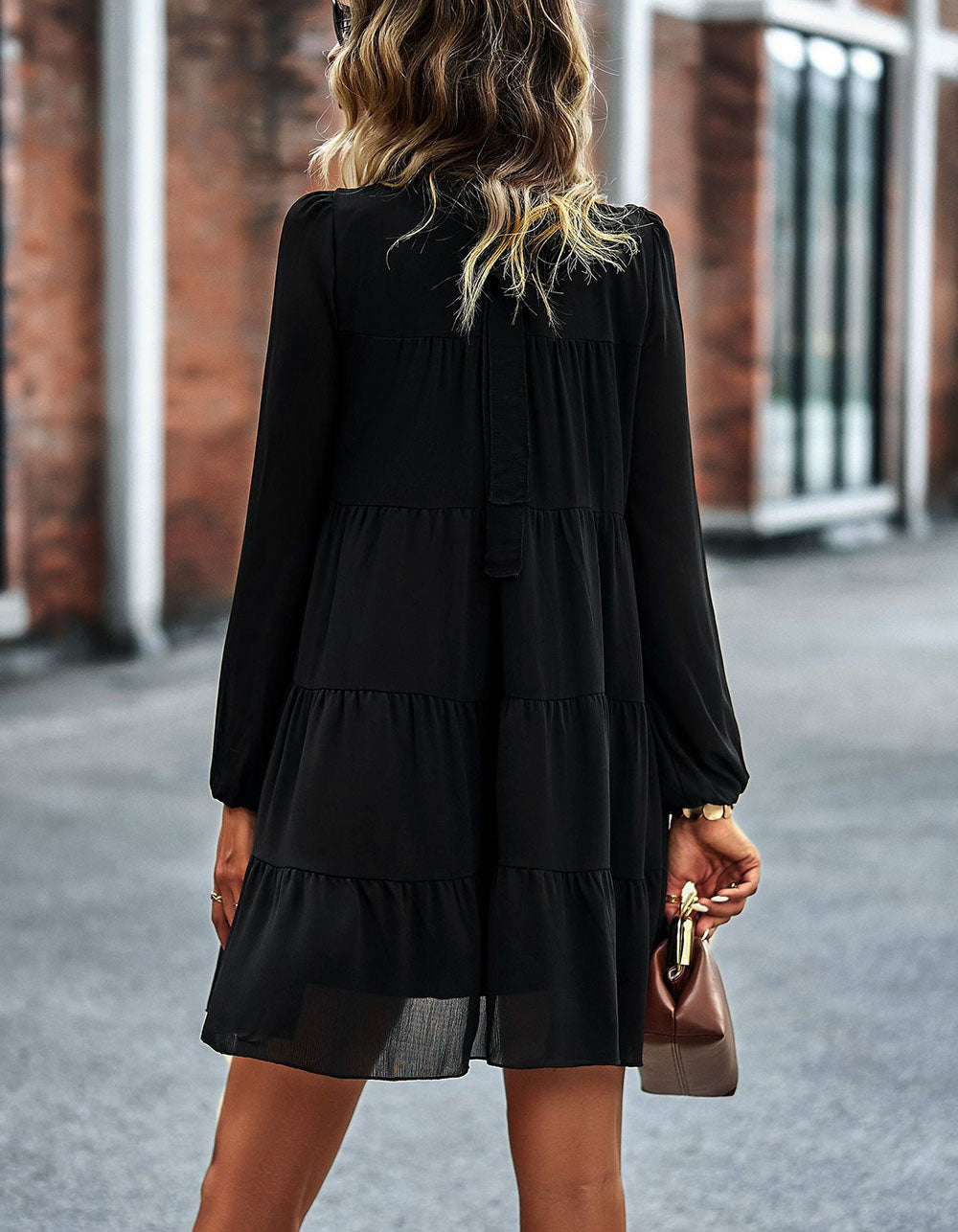 Stay fashionable with this Solid-color Round Neck Long Sleeve Loose Short A-Line Ruffle Hem Dress! It features a striking silhouette in a variety of stunning colors, an elegant round neckline, mid-waist fit, and lightweight polyester fabric with slight stretch. Look great for any casual occasion!