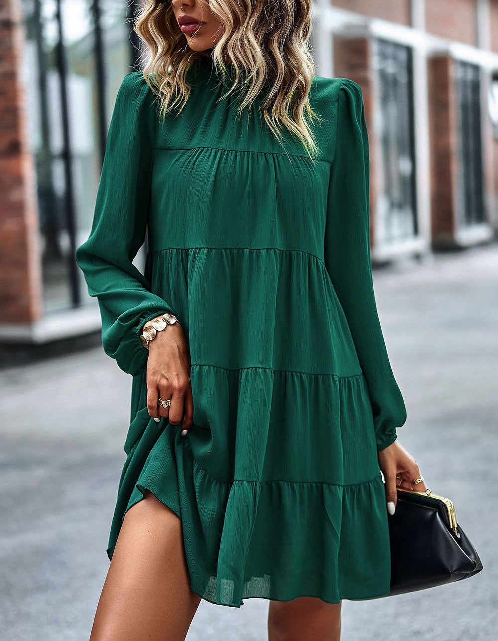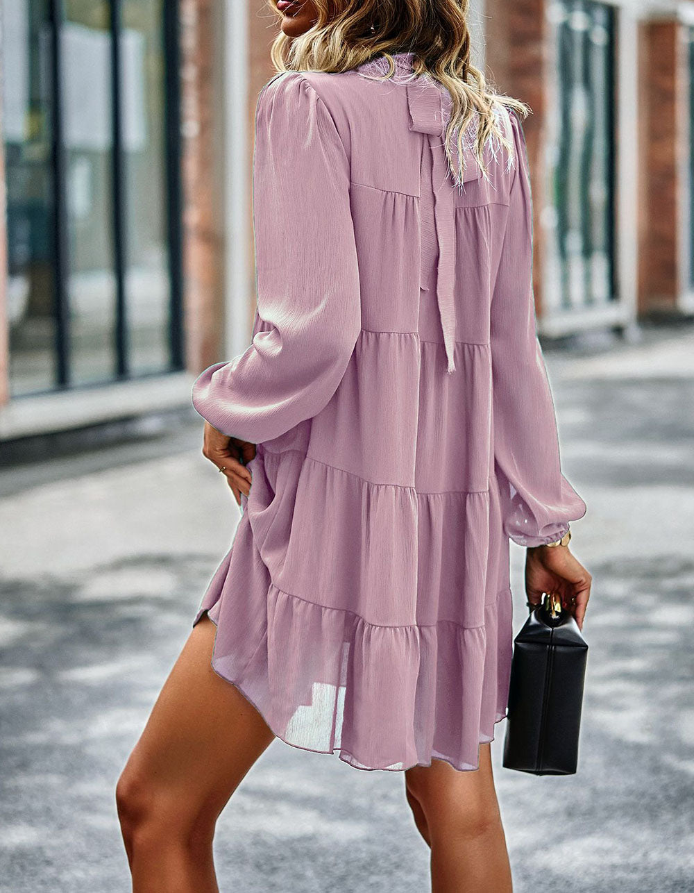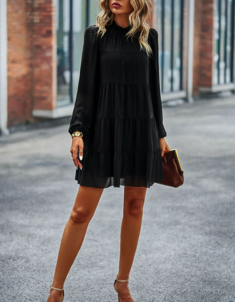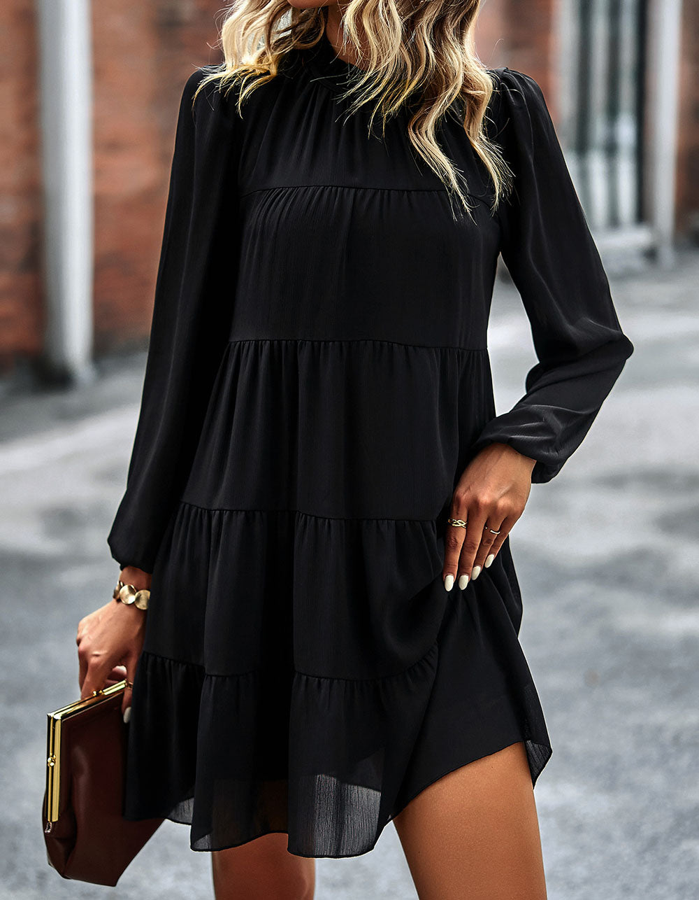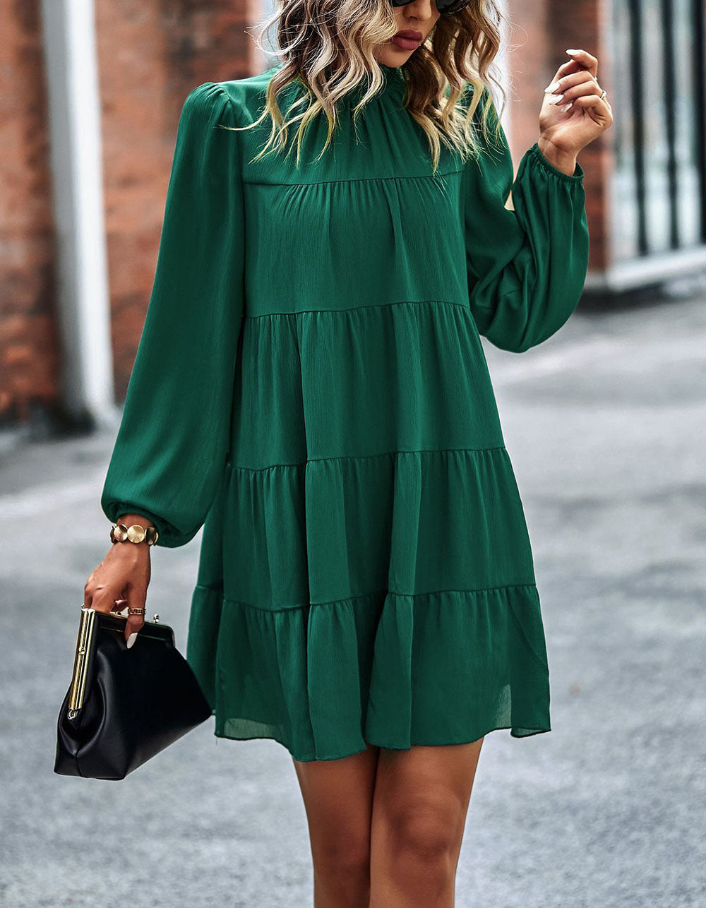 Stay fashionable with this Solid-color Round Neck Long Sleeve Loose Short A-Line Ruffle Hem Dress! It features a striking silhouette in a variety of stunning colors, an elegant round neckline, mid-waist fit, and lightweight polyester fabric with slight stretch. Look great for any casual occasion!