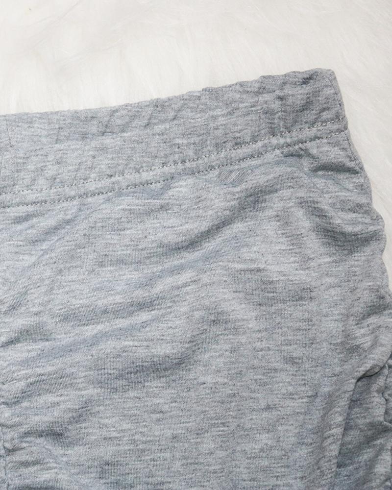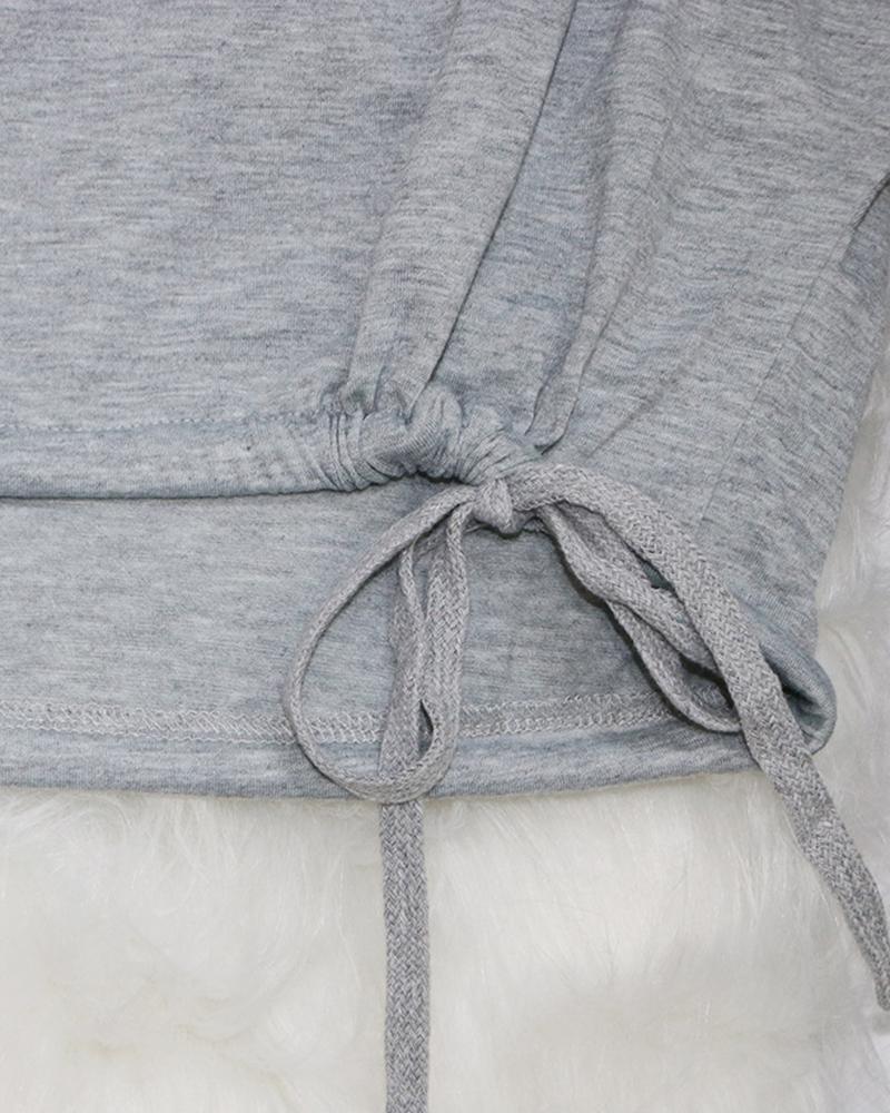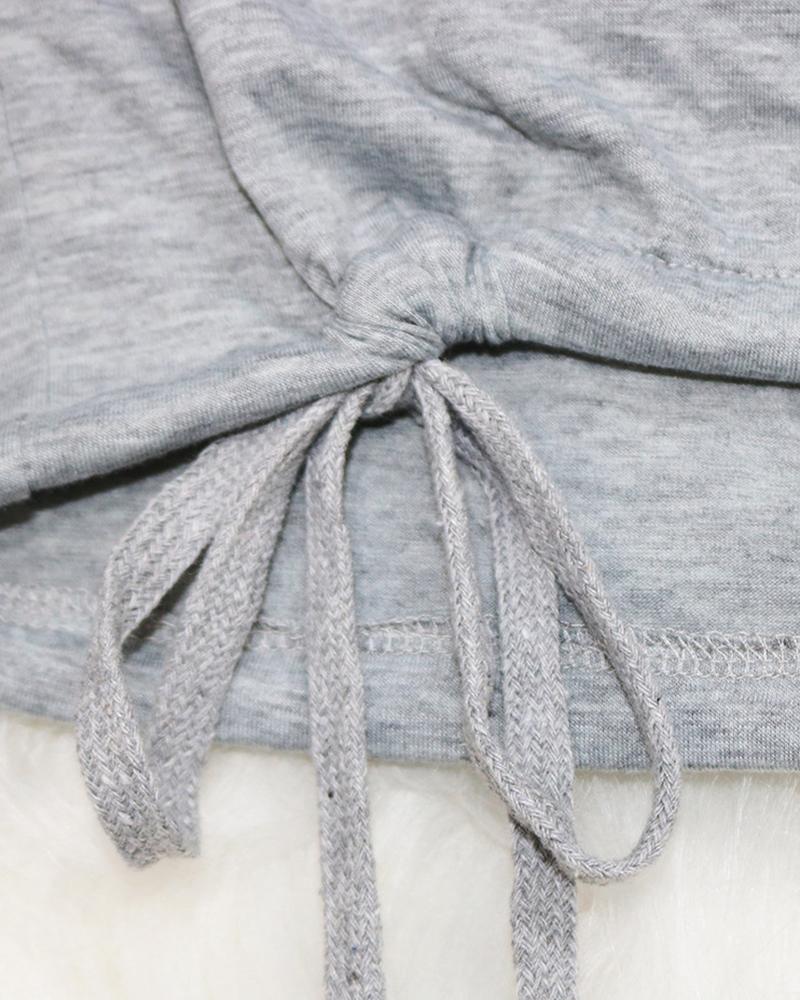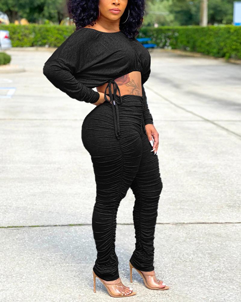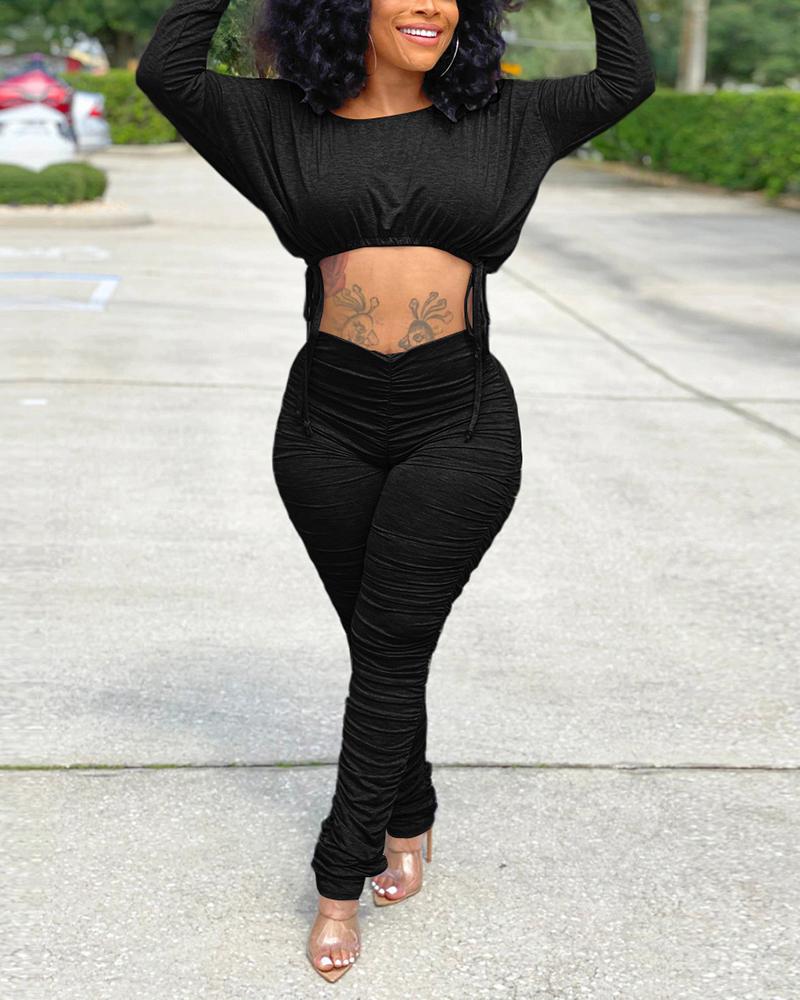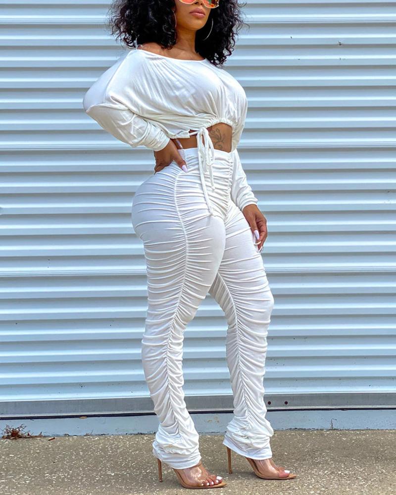 Solid Drawstring Ruched Crop Top & Pants Set