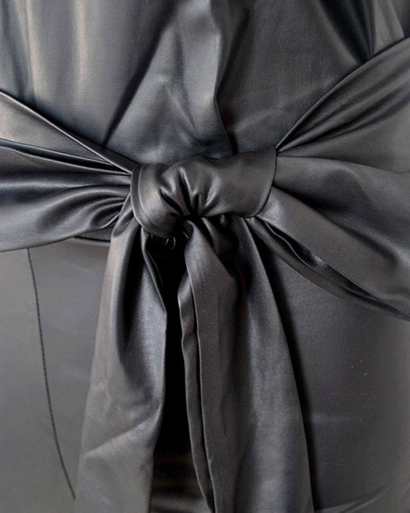 Solid PU Leather Belted Asymmetrical Neck Form Fitted Casual Jumpsuit