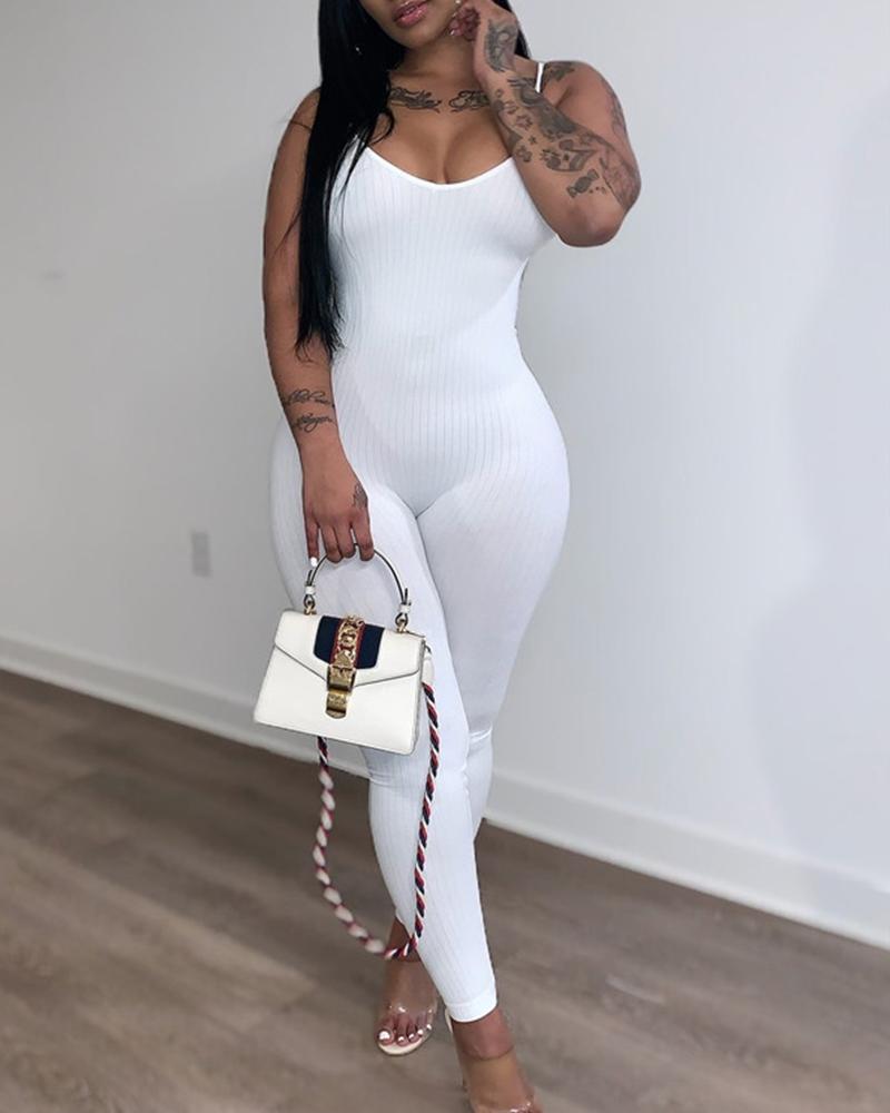 Solid Ribbed Criss Cross Cami Casual Jumpsuit