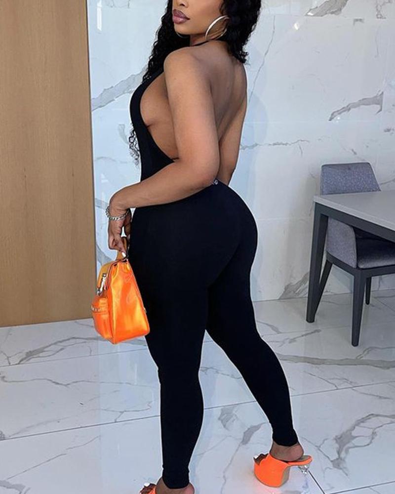 Solid Tie Back Backless Casual Jumpsuit