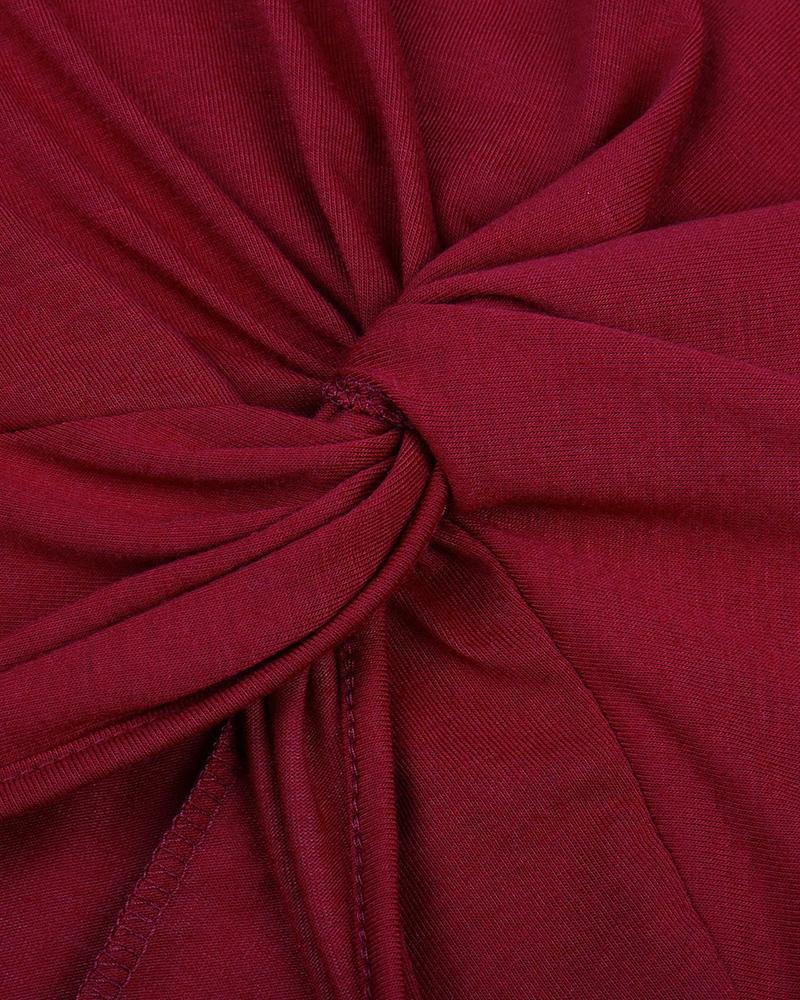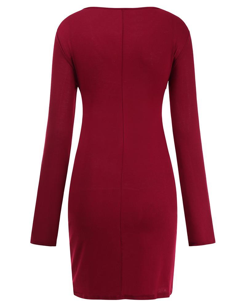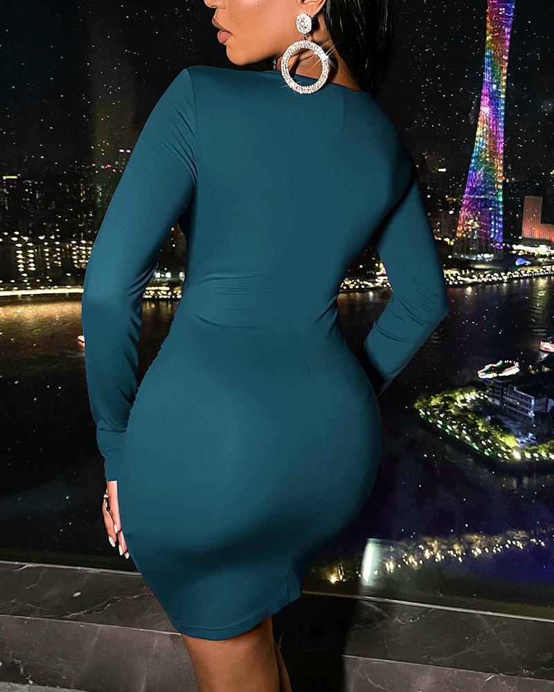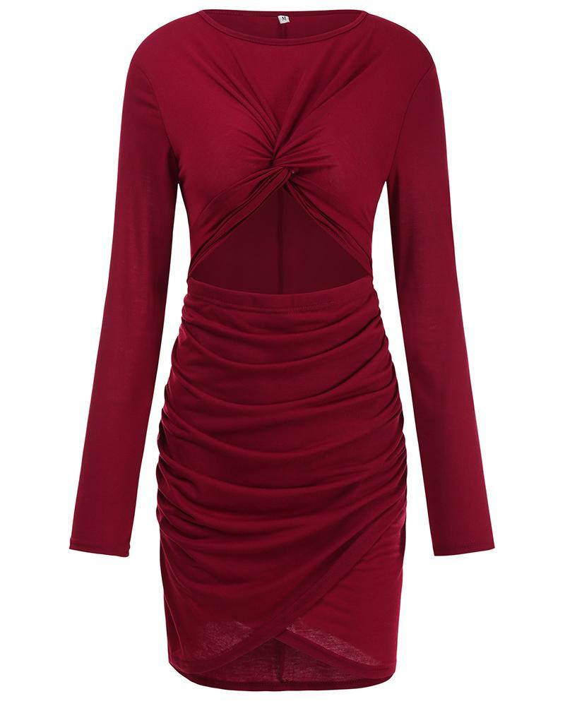 Solid Twist Cut Out Front Ruched Overlap Mini Dress
