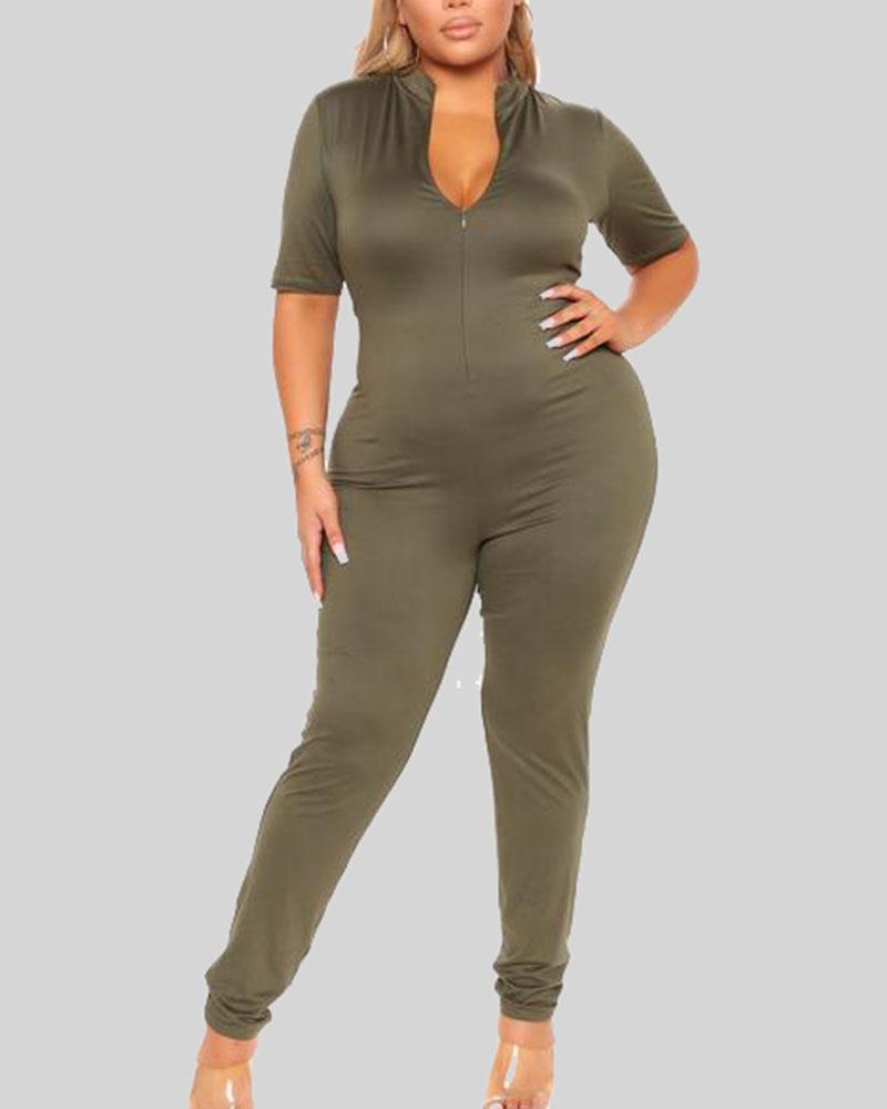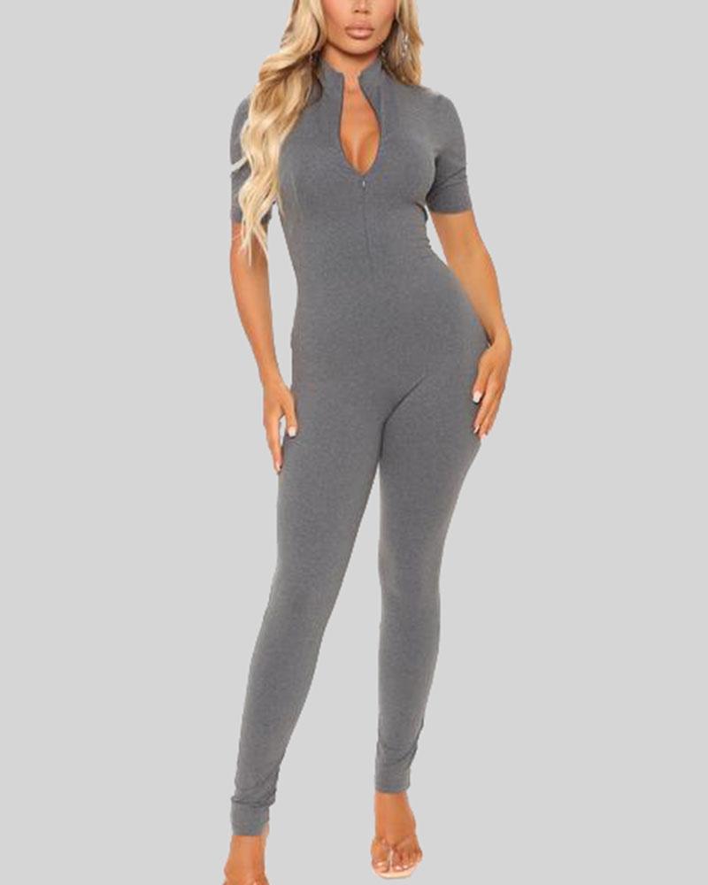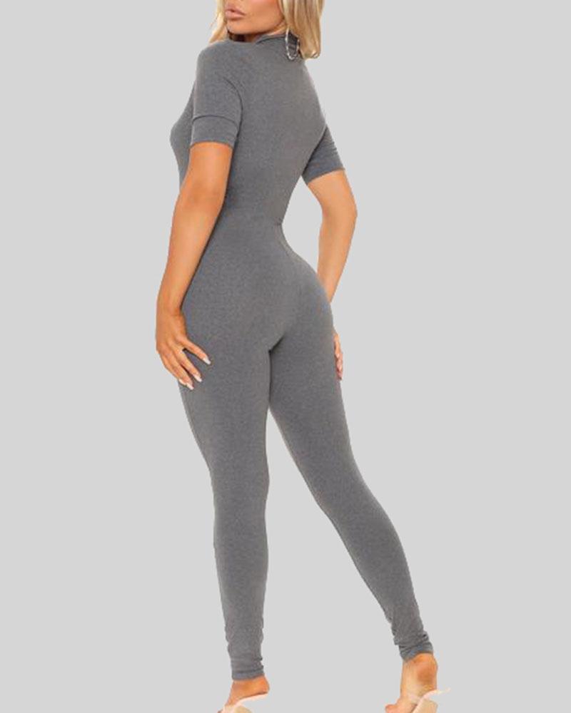 Solid Zip Up Form Fitting Casual Jumpsuit