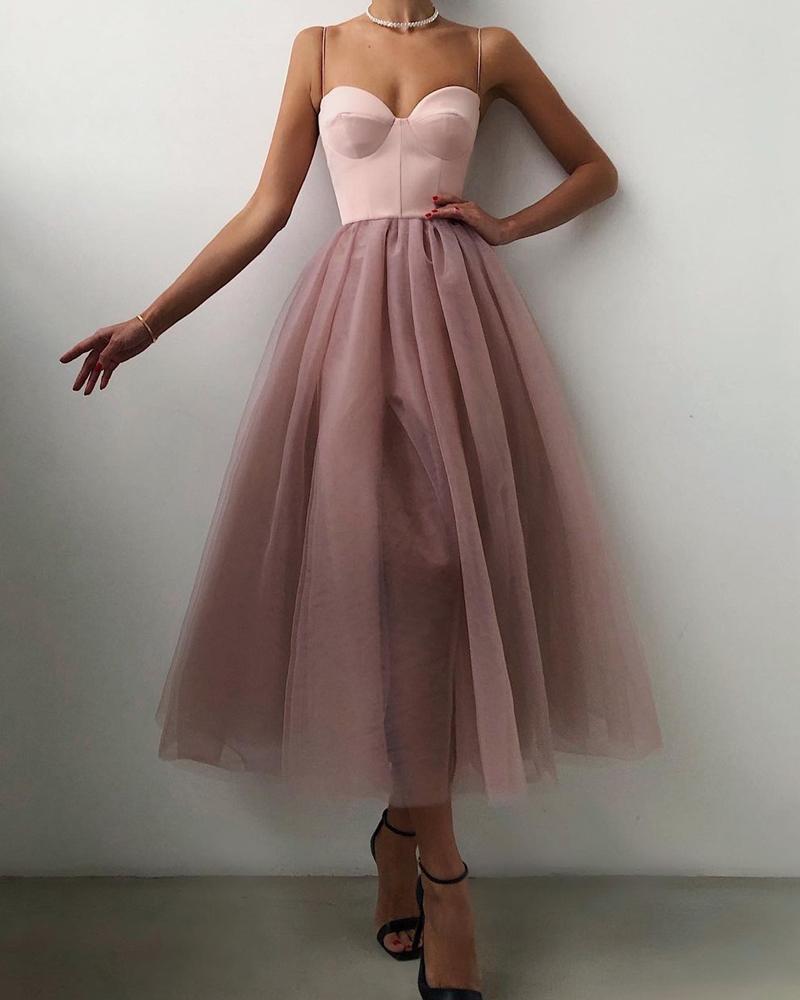 Spaghetti Strap Plain Sheer Mesh Evening Dress