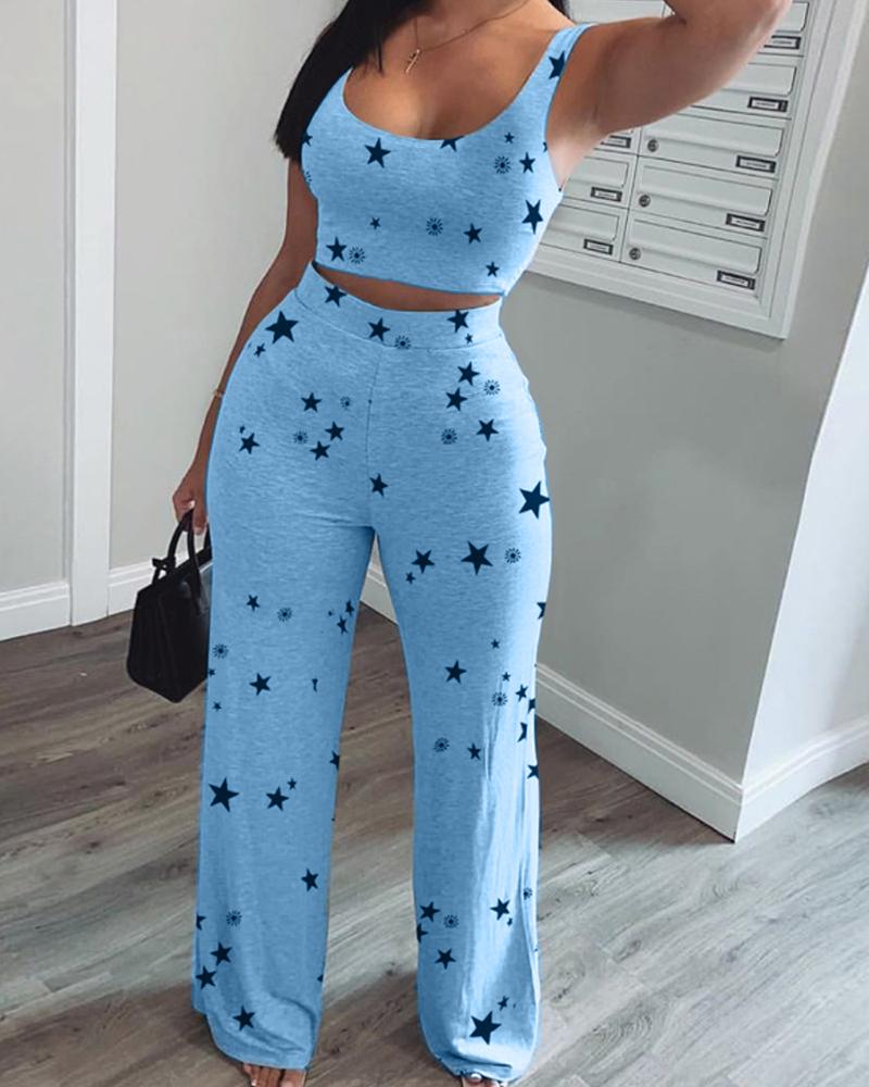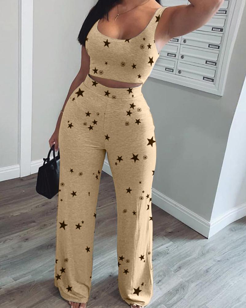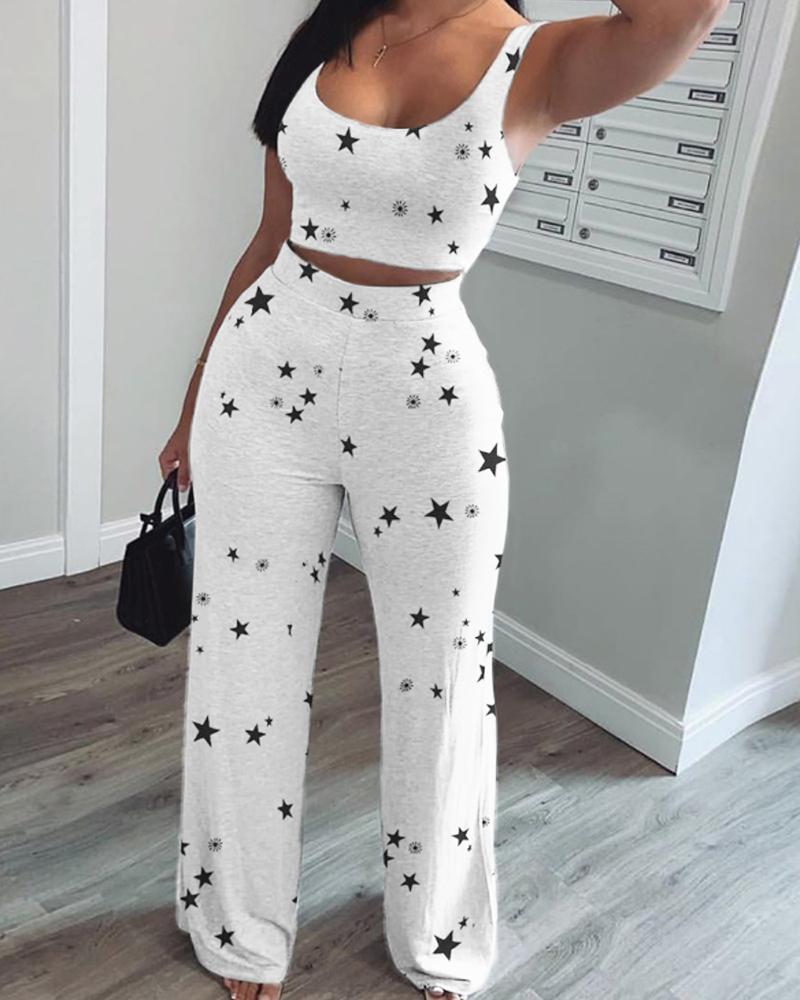 Star Print Cami Top & Wide Leg Pants Set