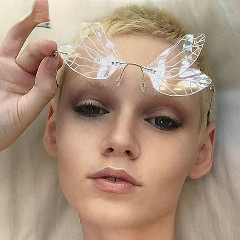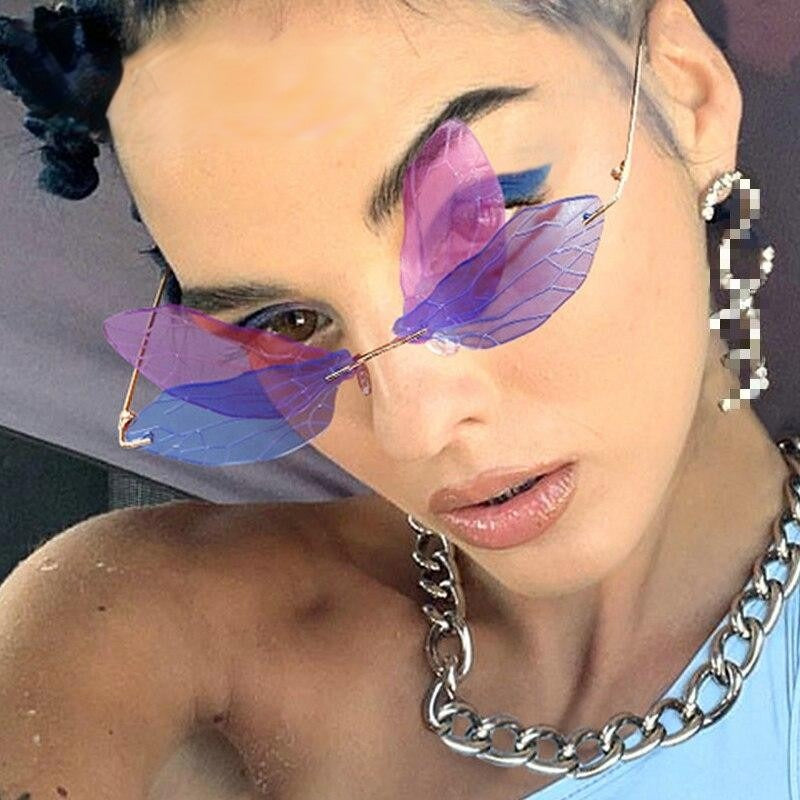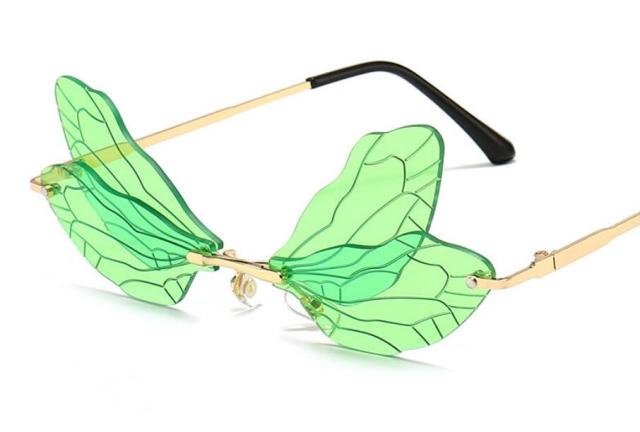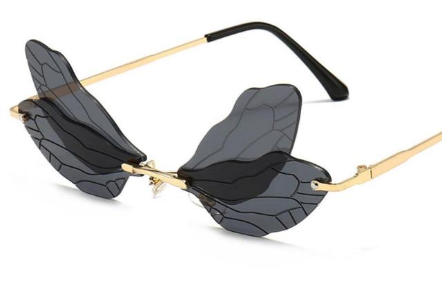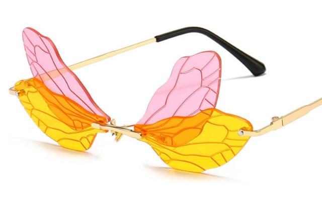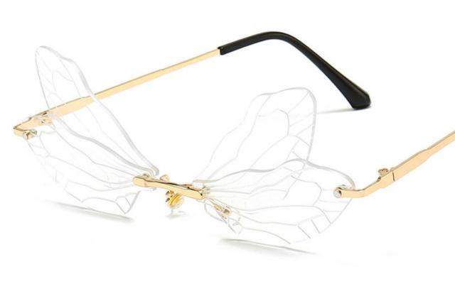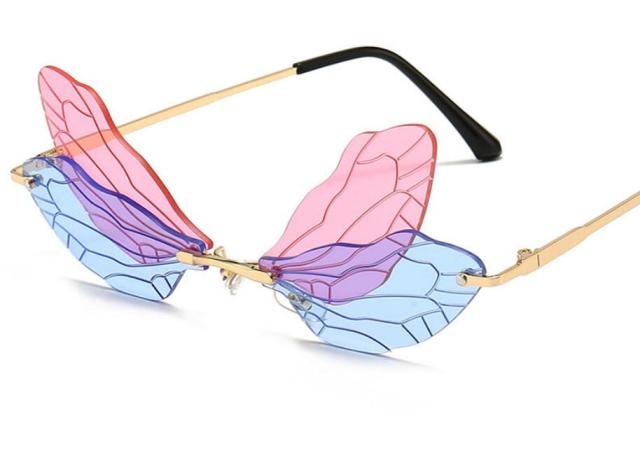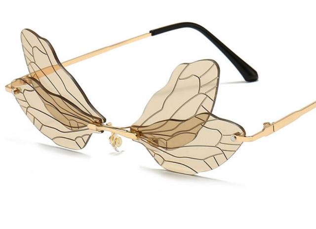 Steampunk Dragonfly Rimless Retro Sunglasses