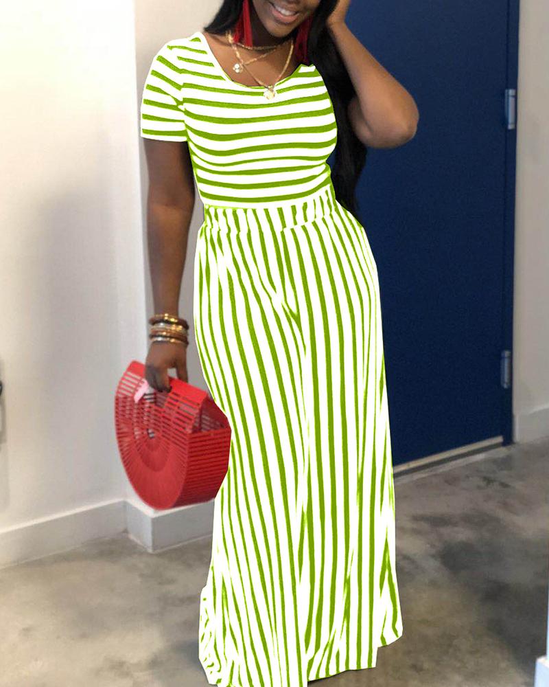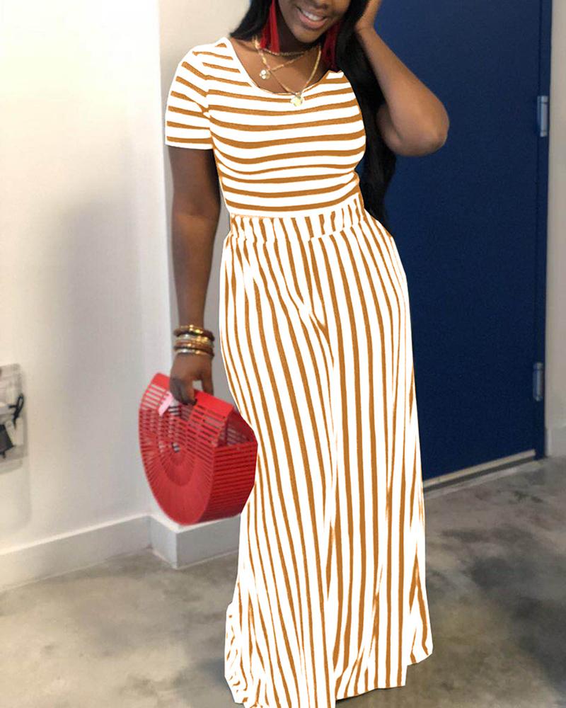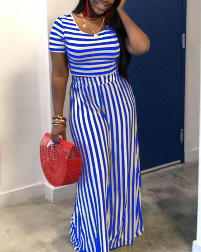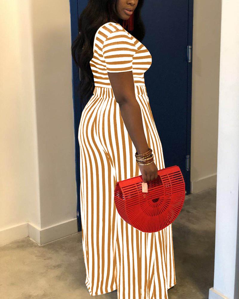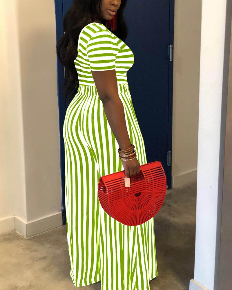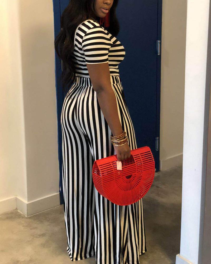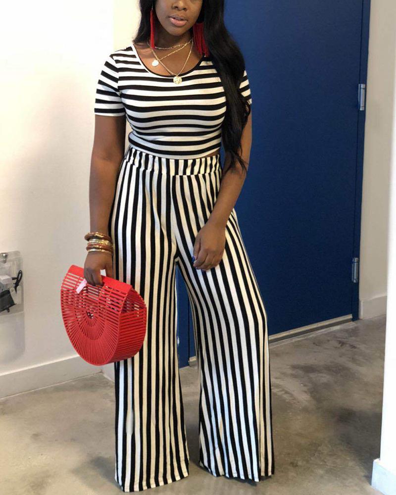 Striped Scoop Neck Top & Straight Leg Pants Set