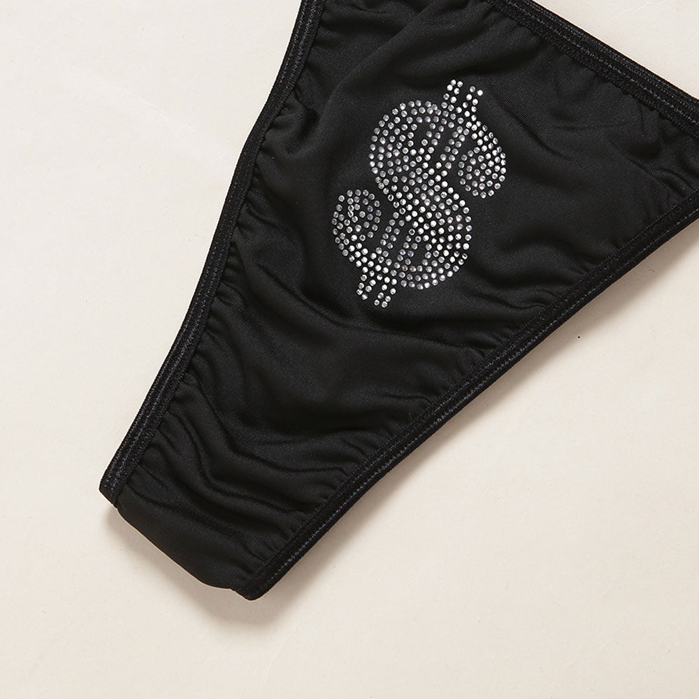 Stylish Crystal Dollar Print Slide Triangle Brazilian Two Piece Bikini Swimsuit