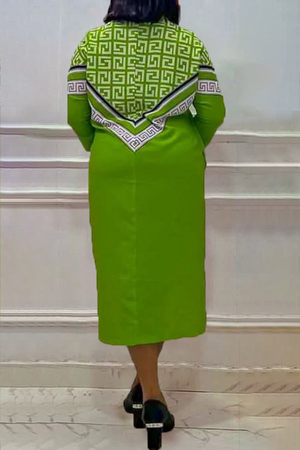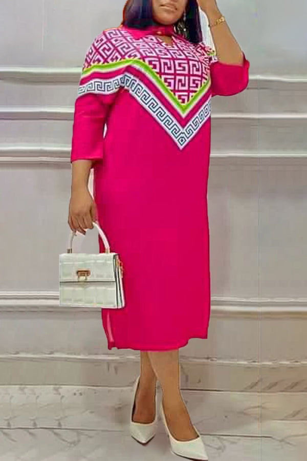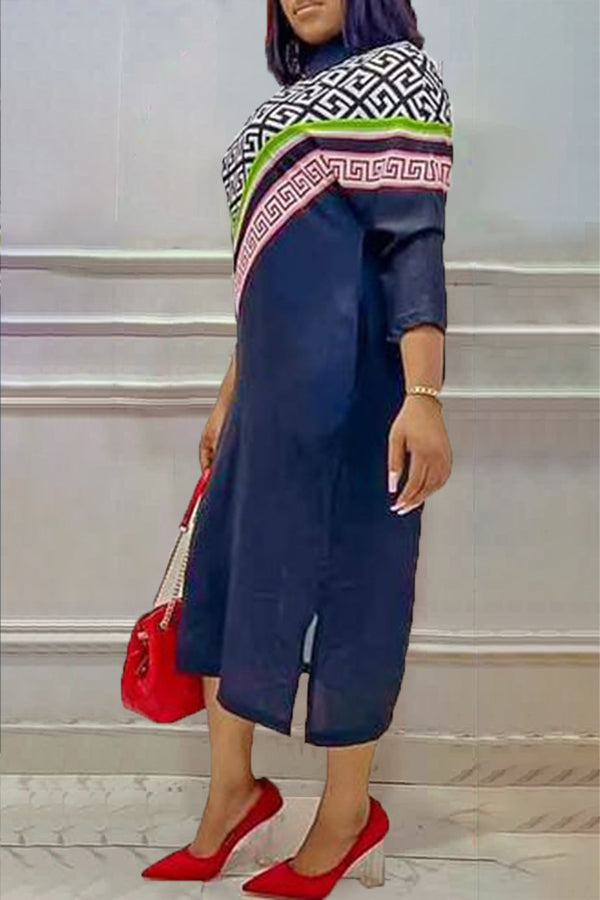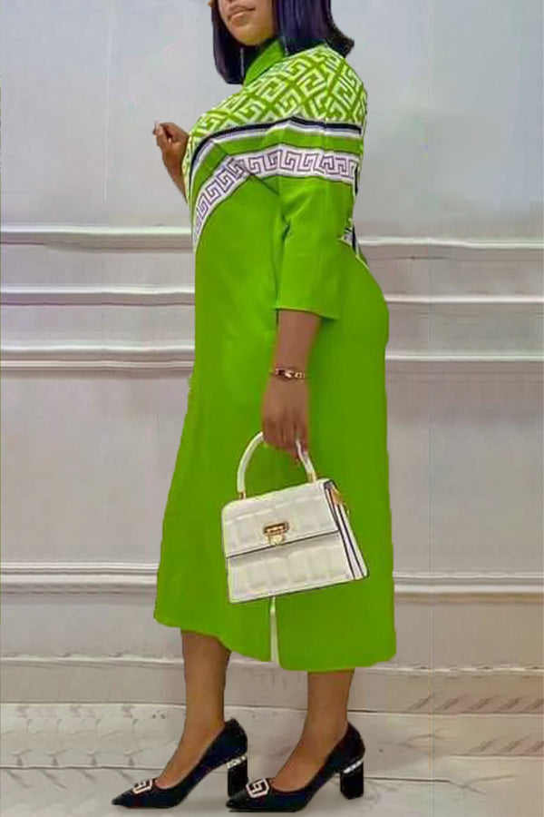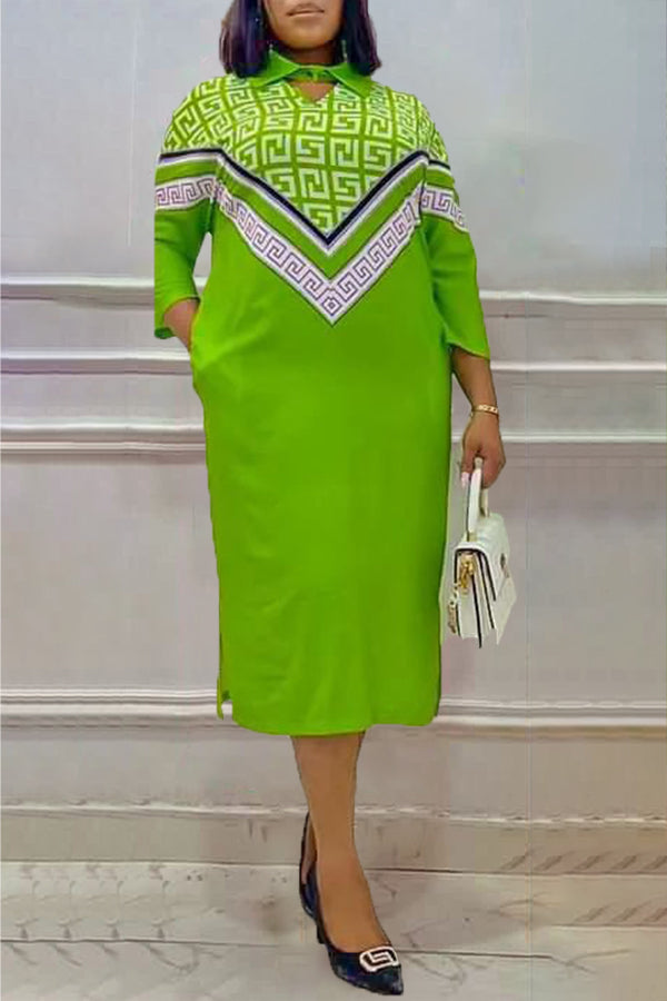 Stylish Elegant Geometric Print Plus Size Shirt Dress