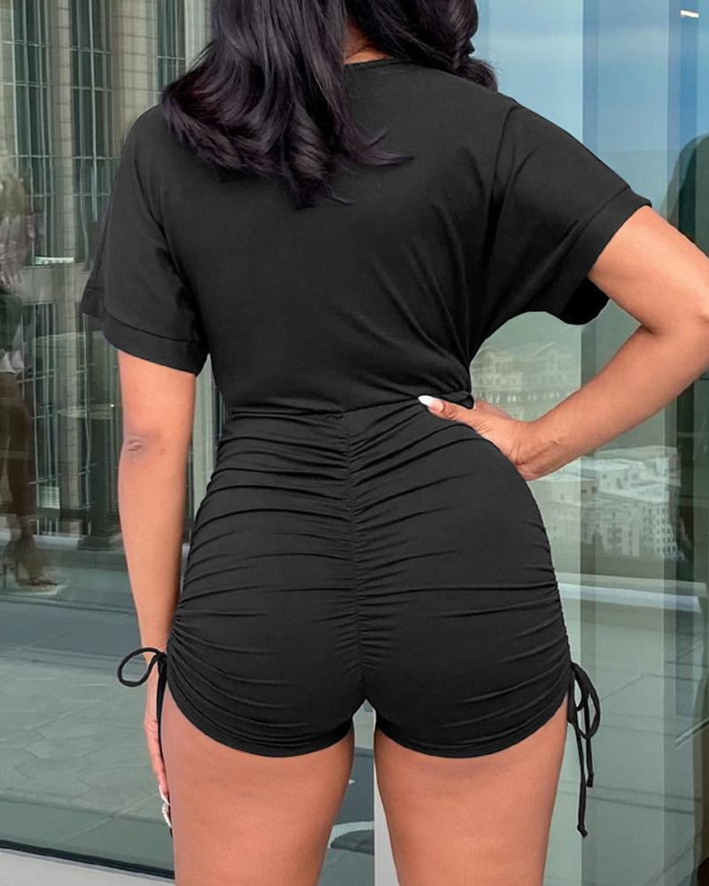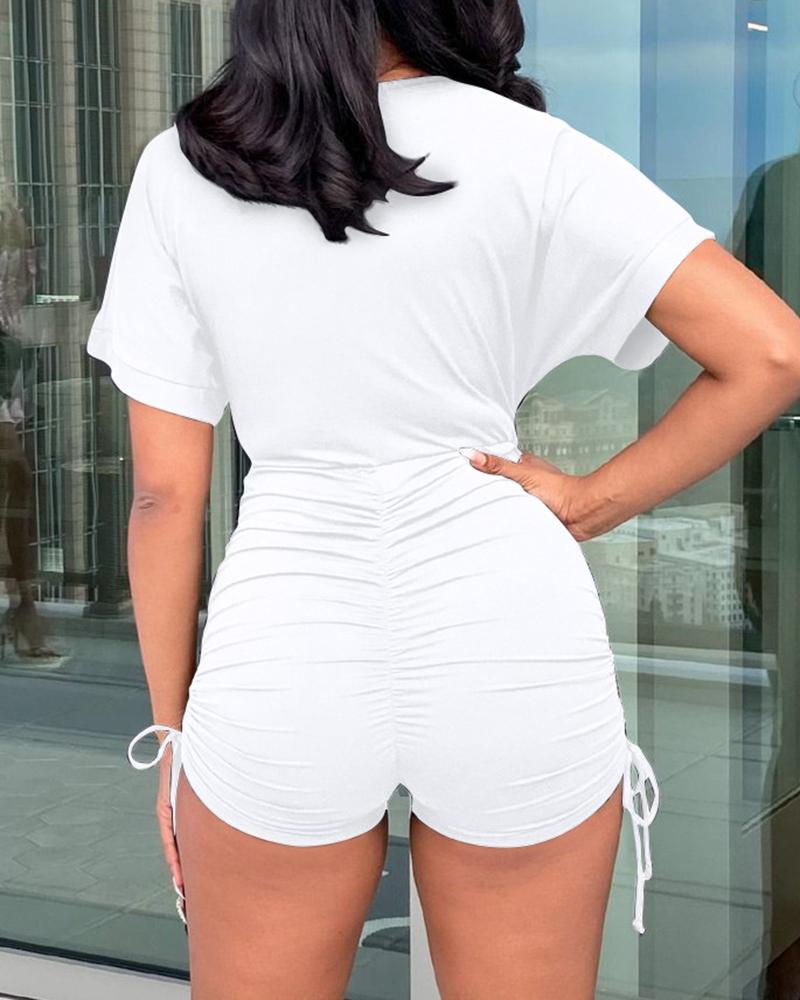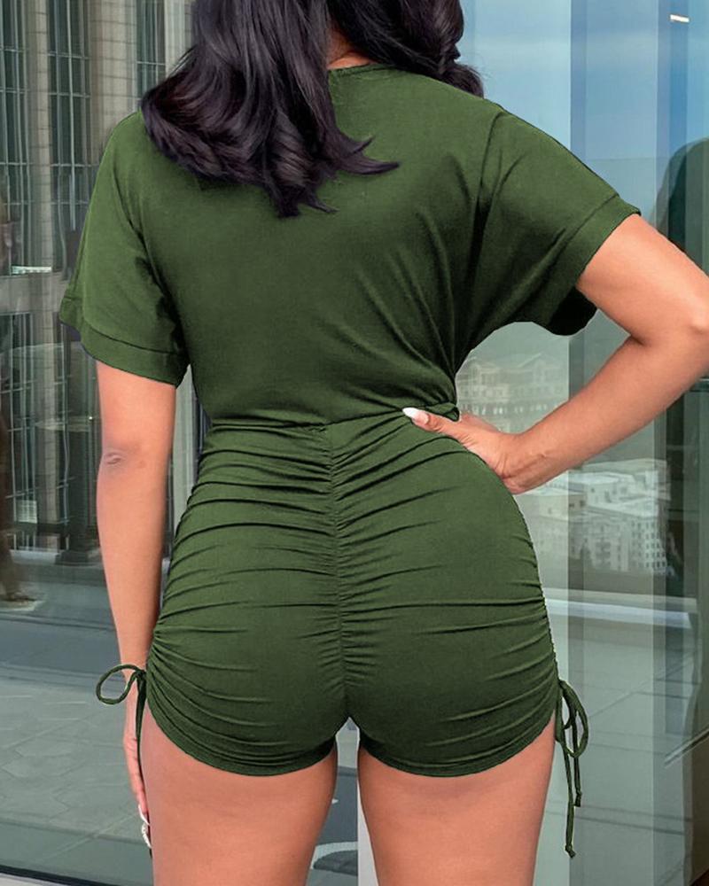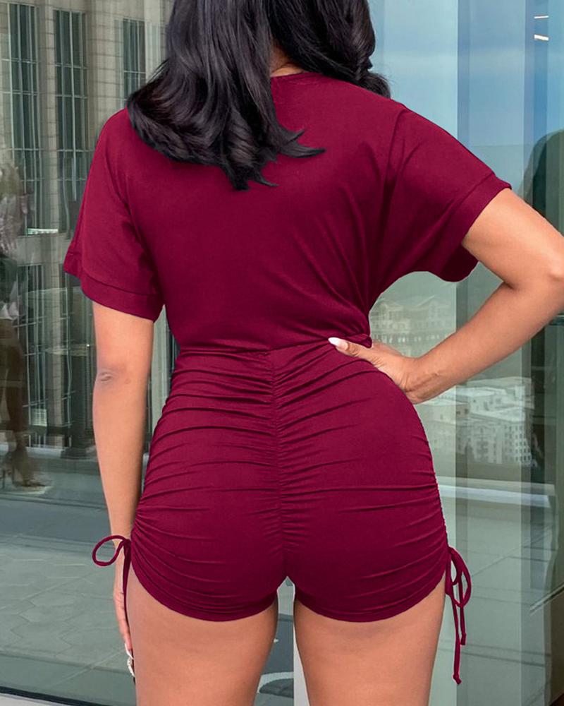 Surplice Neck Drawstring Side Scrunch Butt Casual Romper