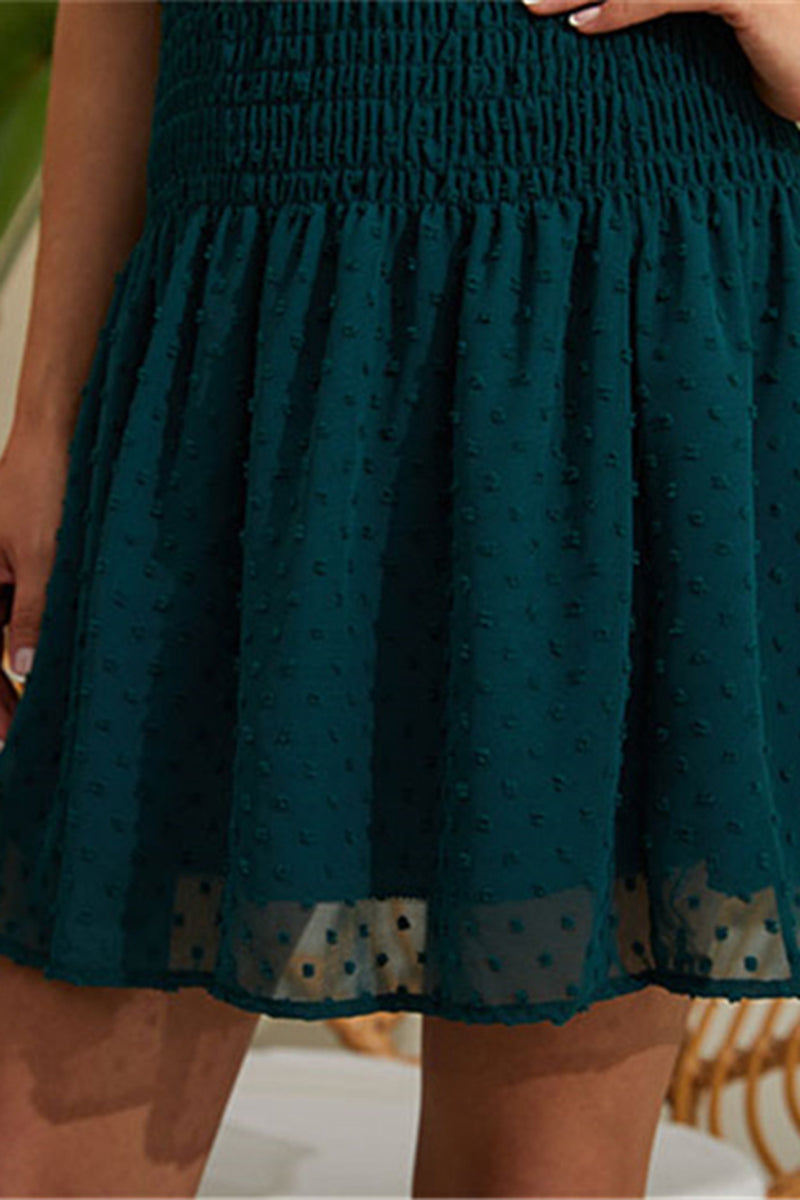 Swiss Dot Shirred Waist Overlay Tube Dress