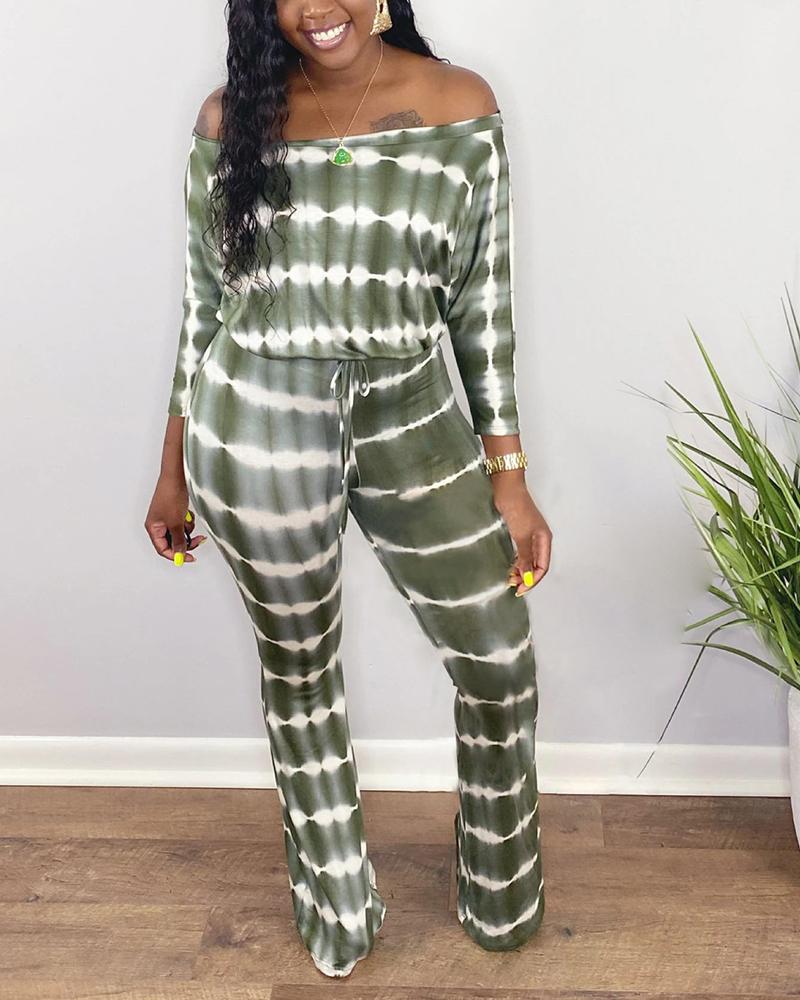 Tie Dye Drawstring Waist Off Shoulder Casual Jumpsuit