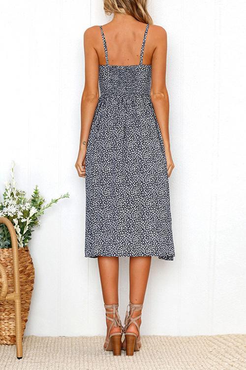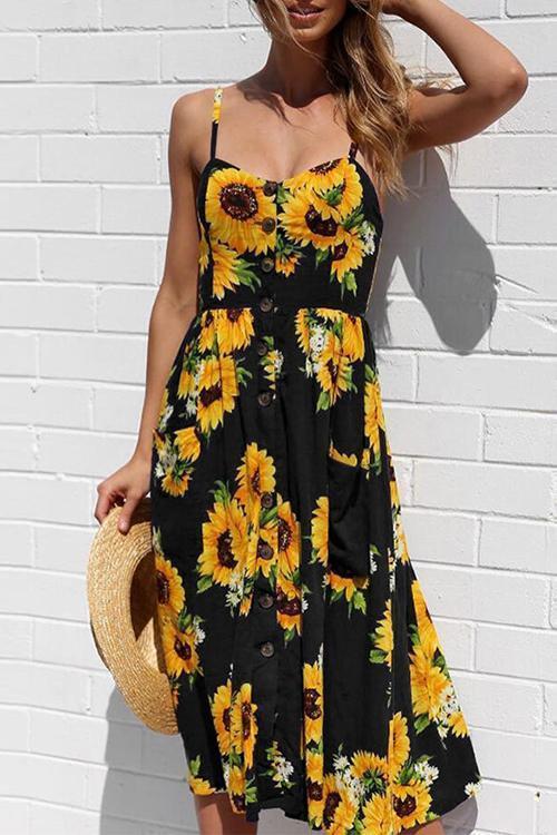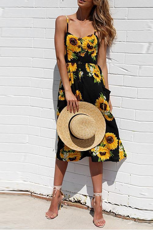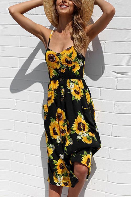 Sunflower Pineapple Pattern Sling Open Back Sexy Dress