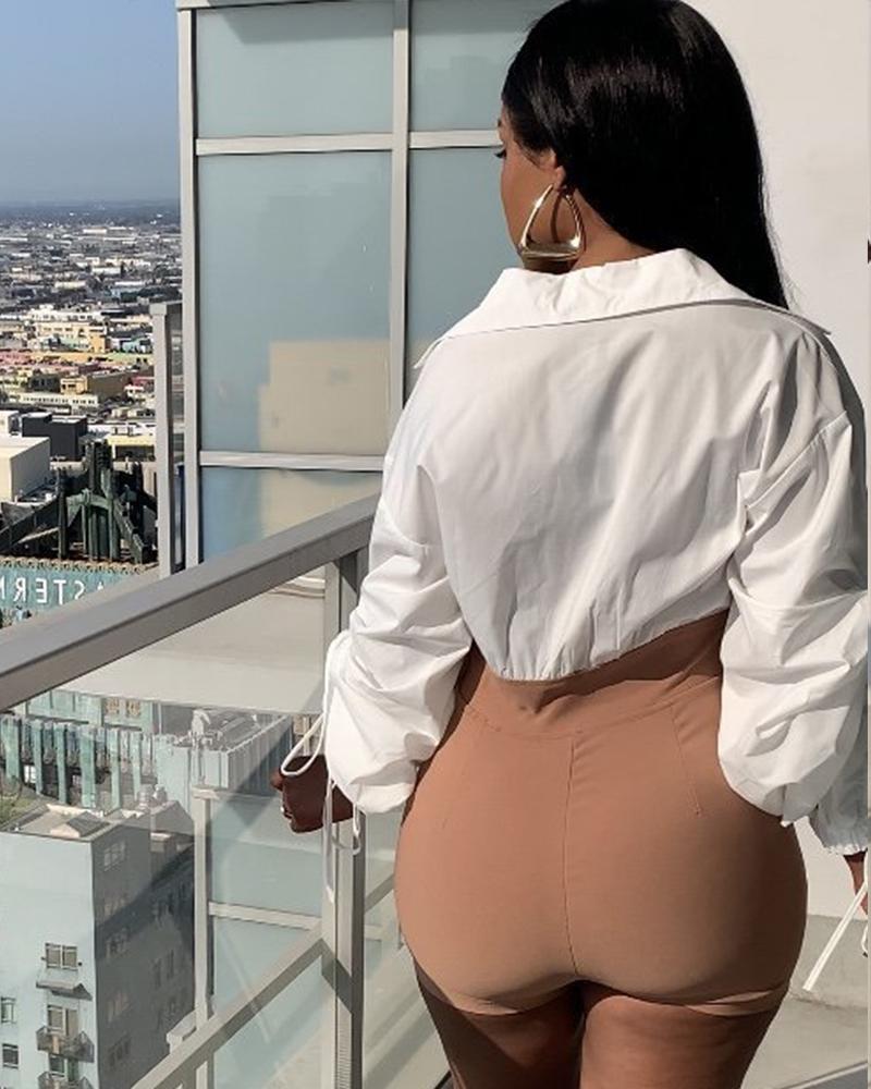 Two Tone Zipper Detail Shirt Casual Romper