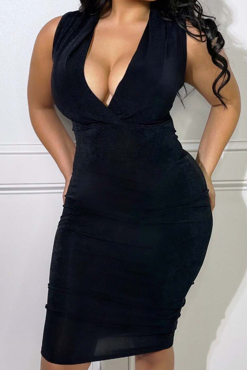 Velvet Plunging Neck Sleeveless Pencil Dress