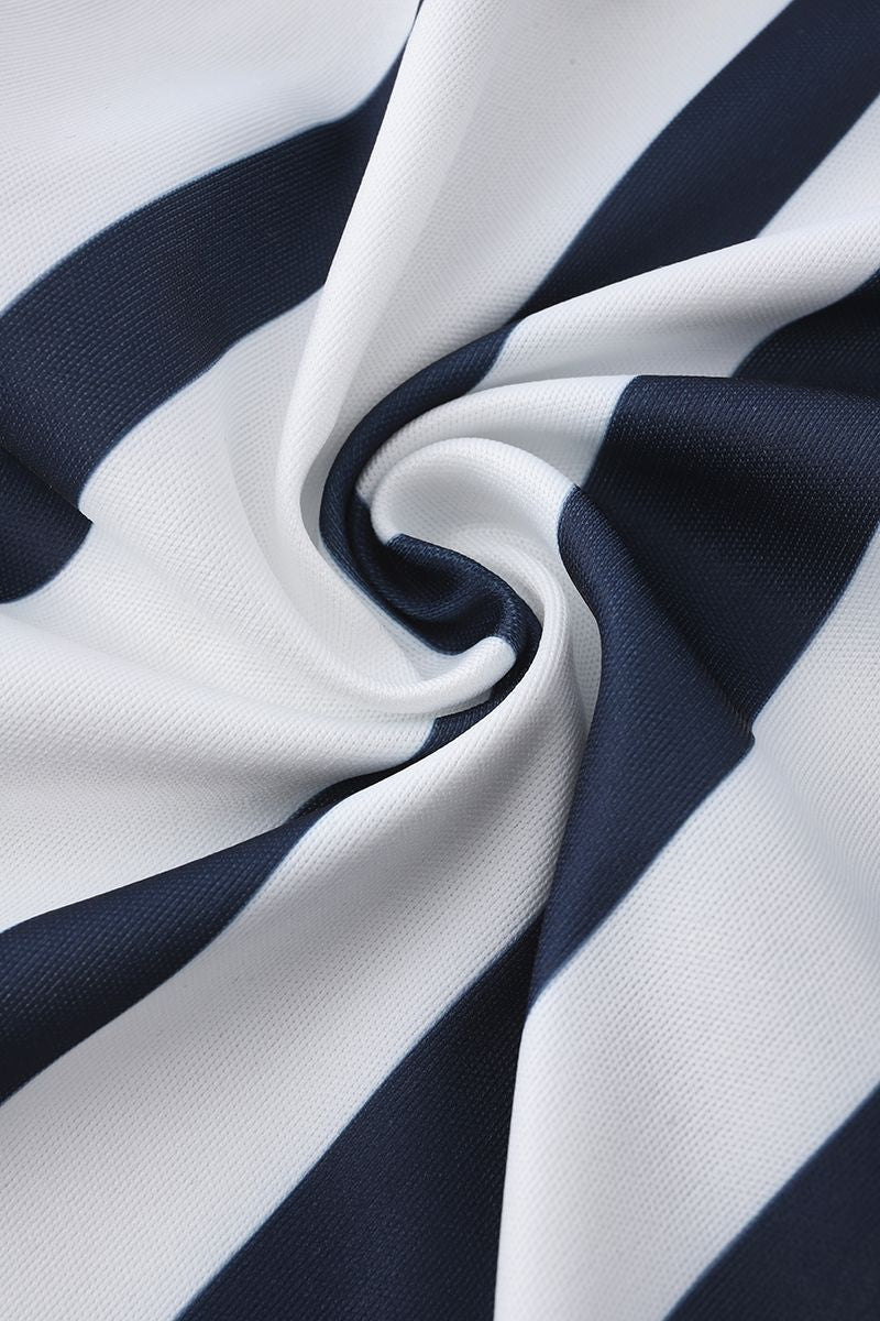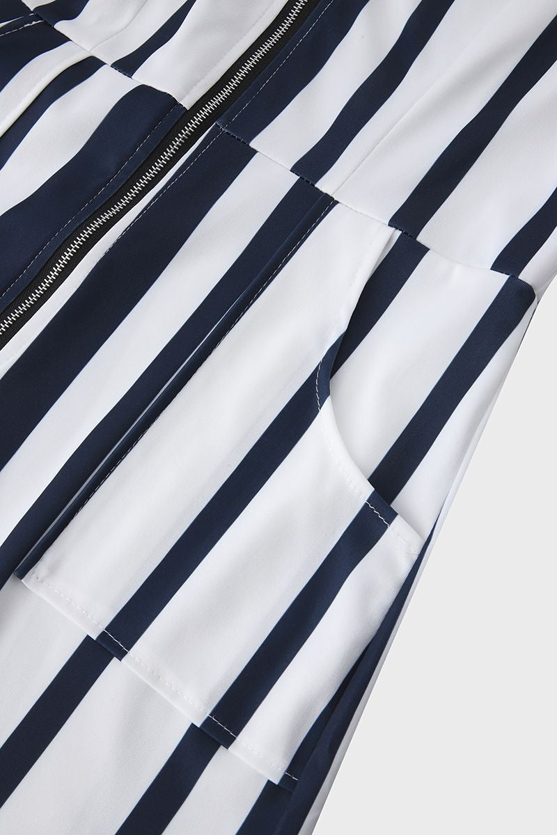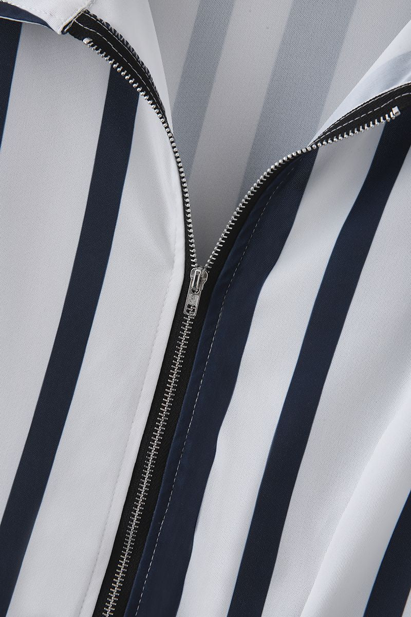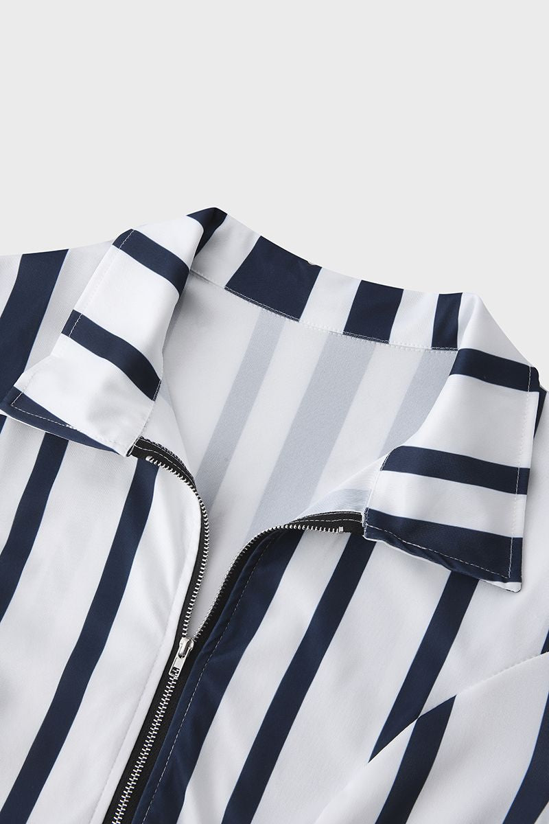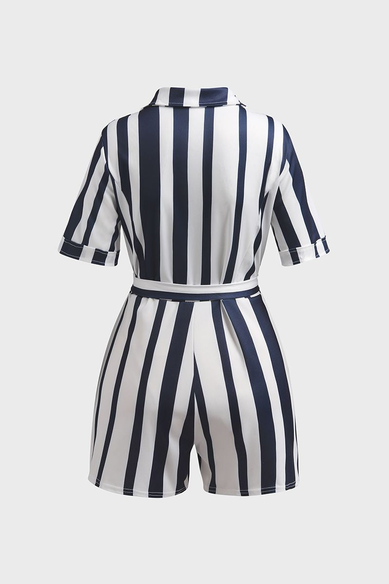 Vertical Stiped Belted Zip Front Romper