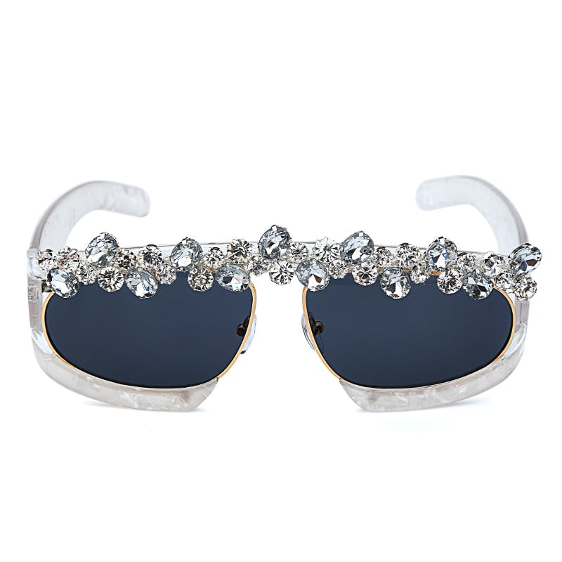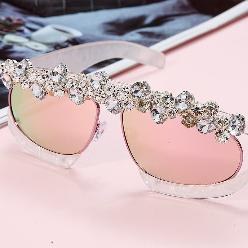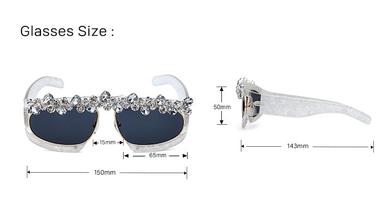Vintage Diamond Reflective Mirror Lens Rhinestone Bar Square Sunglasses