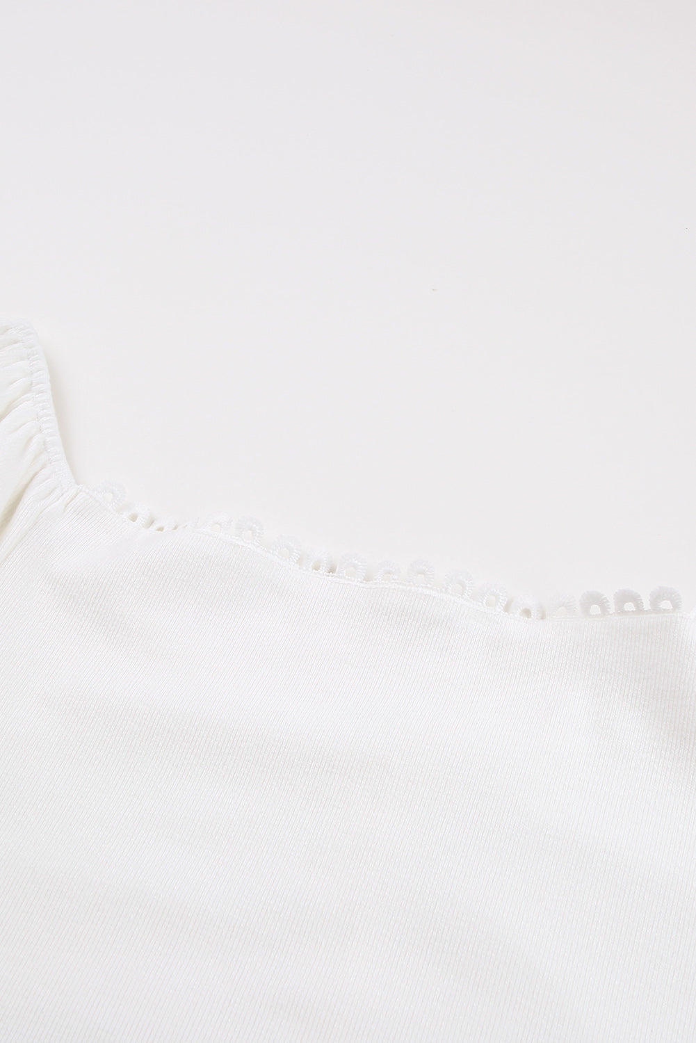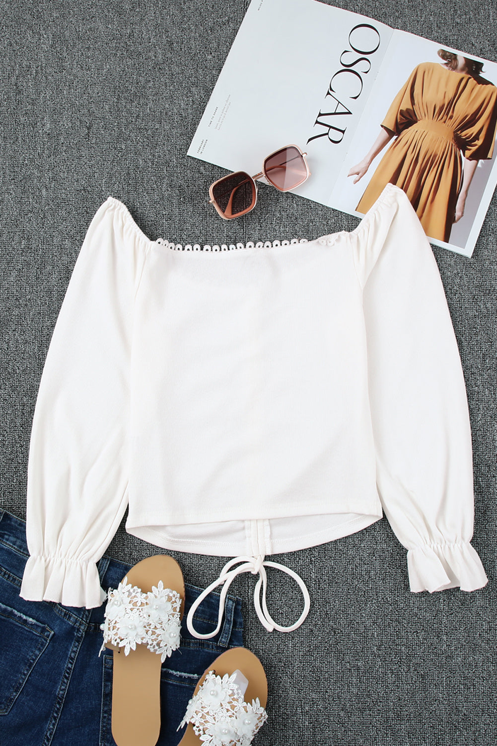 Off the shoulder top highlights the wearer's neck and shoulder line