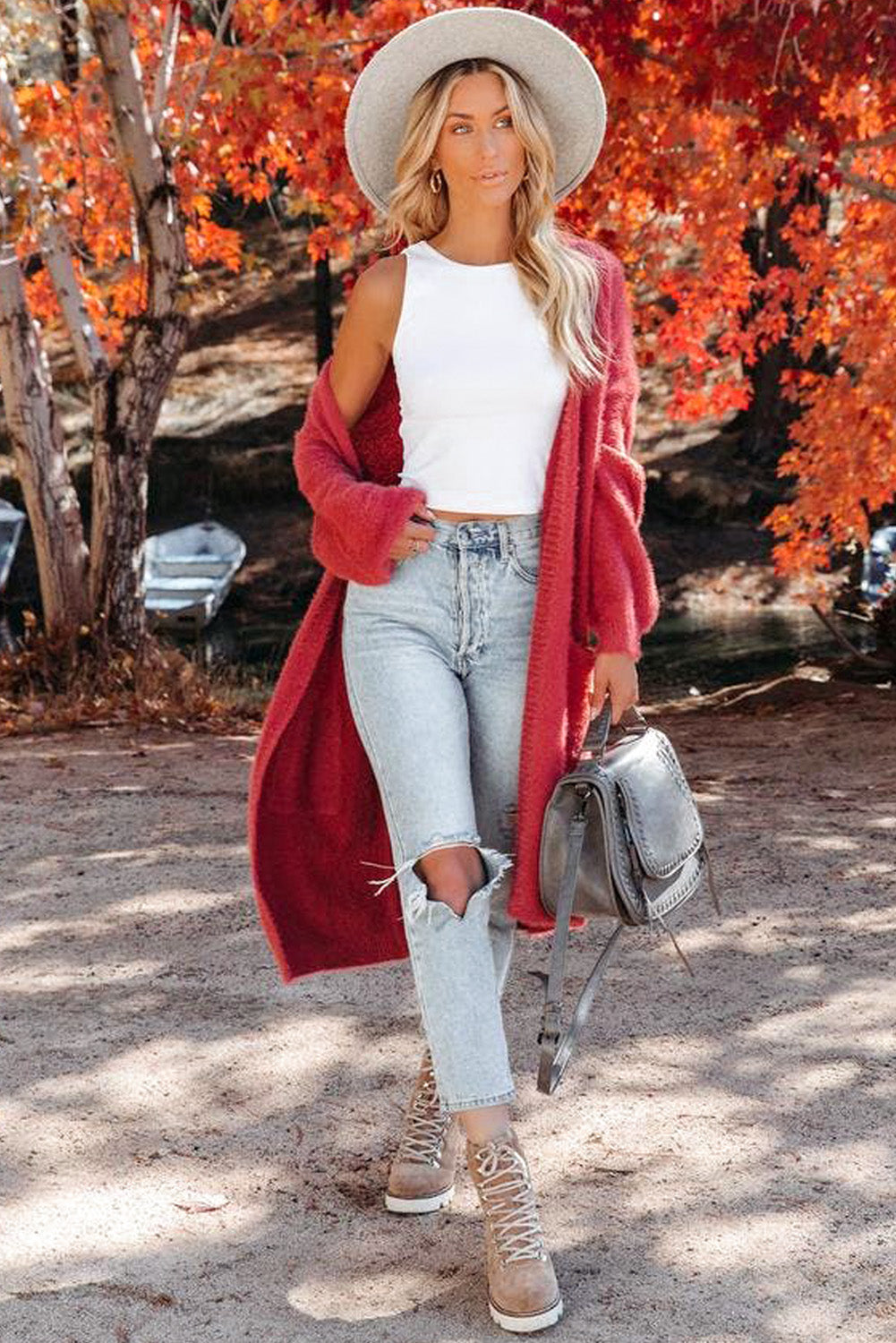 • Round neck, a sleeveless design and cropped length cut
