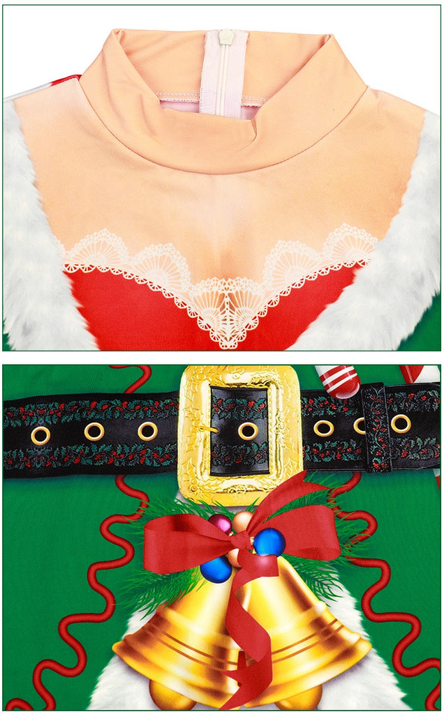 Description: This Christmas jumpsuit costume features a mock neck, long sleeve, skeleton print, this jumpsuit is easy for Halloween party or Christmas party.
