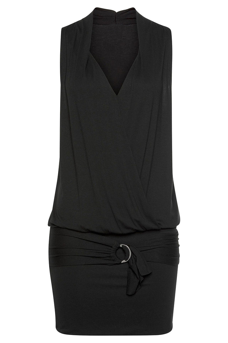 Wrap Buckle Detail Draped Side Sleeveless Dress