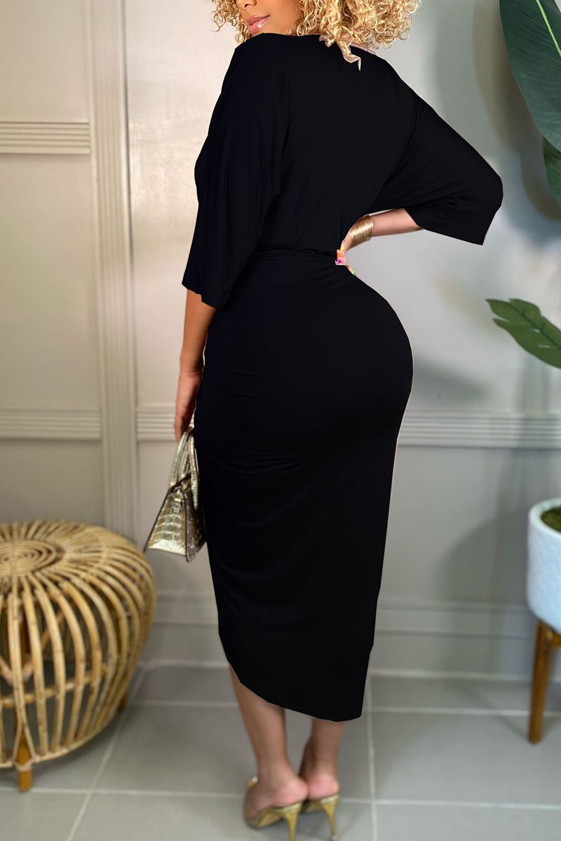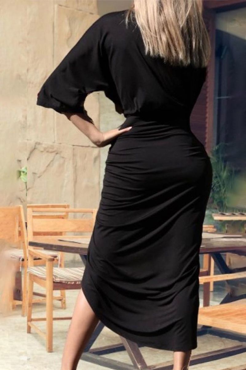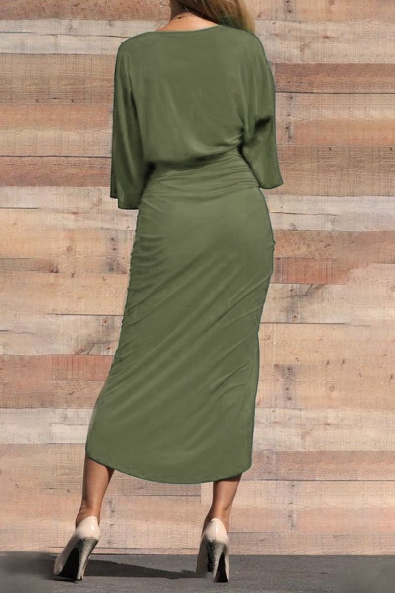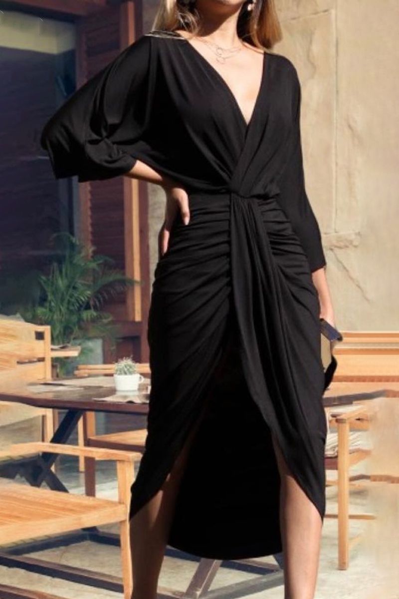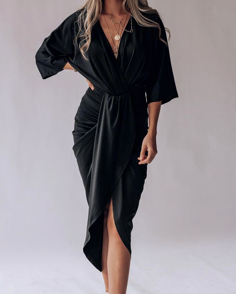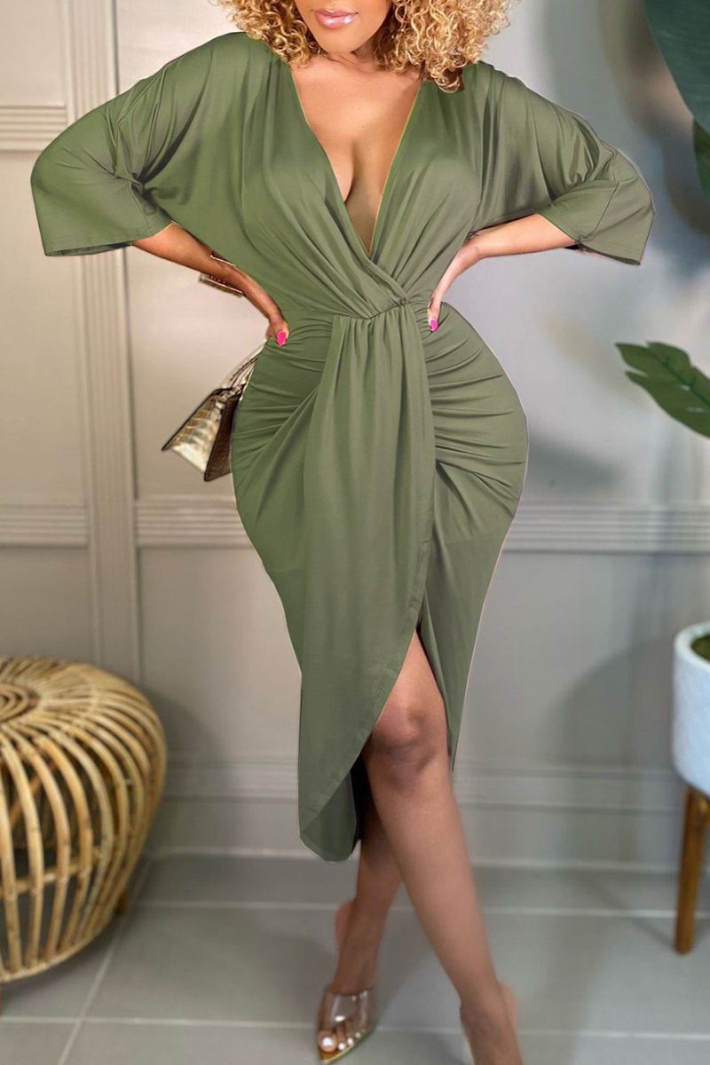 Wrap Ruched Tulip Hem Plunging Neck Dress