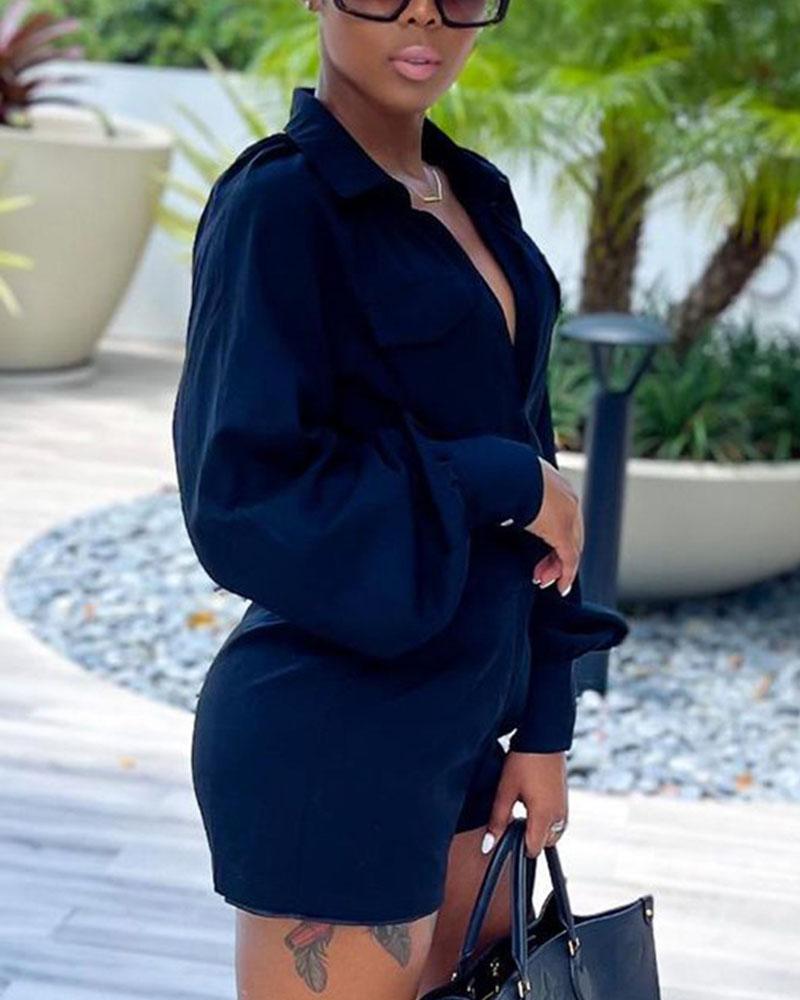 Zip Front Pocket Detail Long Sleeve Casual Romper